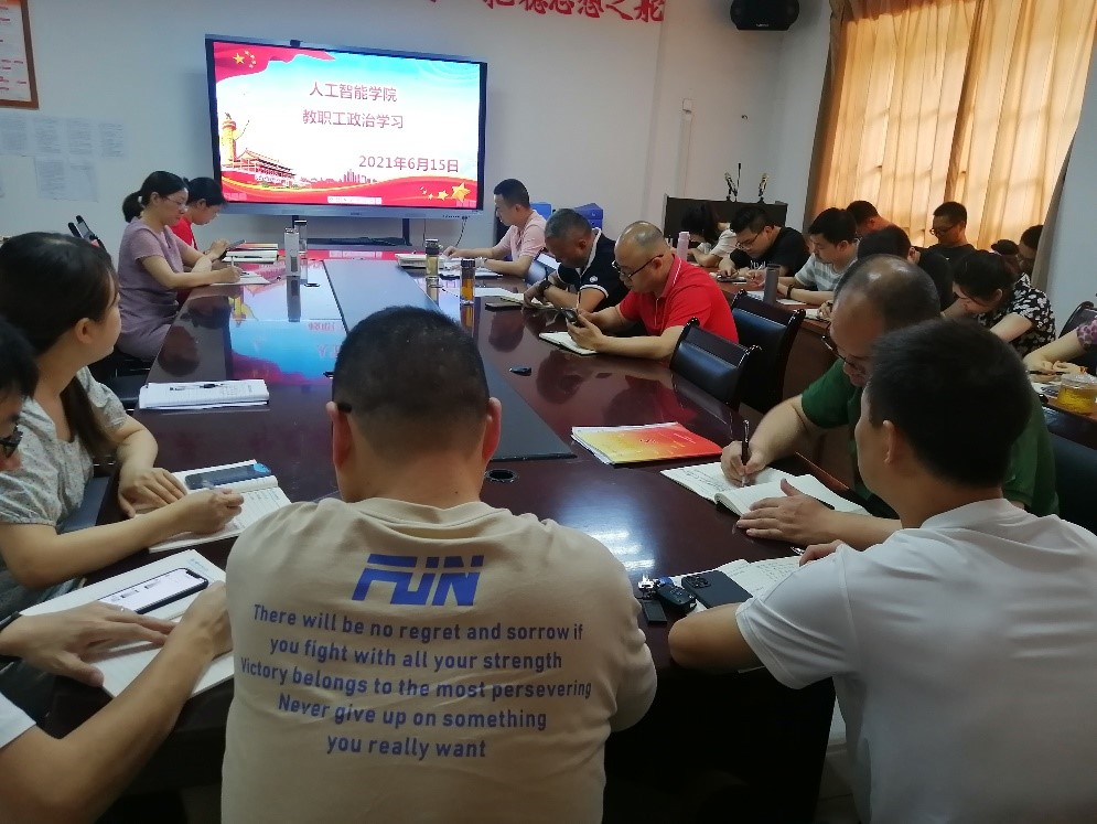 2021年6月15日14:00,人工智能学院党总支在信科楼503会议室开展六月教职工政治理论学习。会议由人工智能学院党总支书记熊泽明主持。