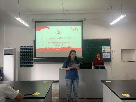 2021年6月7日下午,农林科技学院党总支第一支部于农林楼607教室召开预备党员转正大会。本次会议由党支部书记邓燕红同志主持,支部全体党员参加。