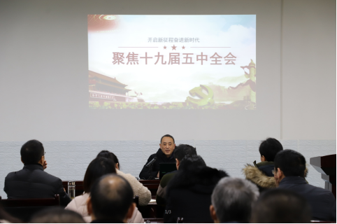 张智副院长以“开启新征程奋进新时代——聚焦十九届五中全会”为题,介绍了党的十九届五中全会基本概况,并就党的十九届五中全会公报进行了宣讲。