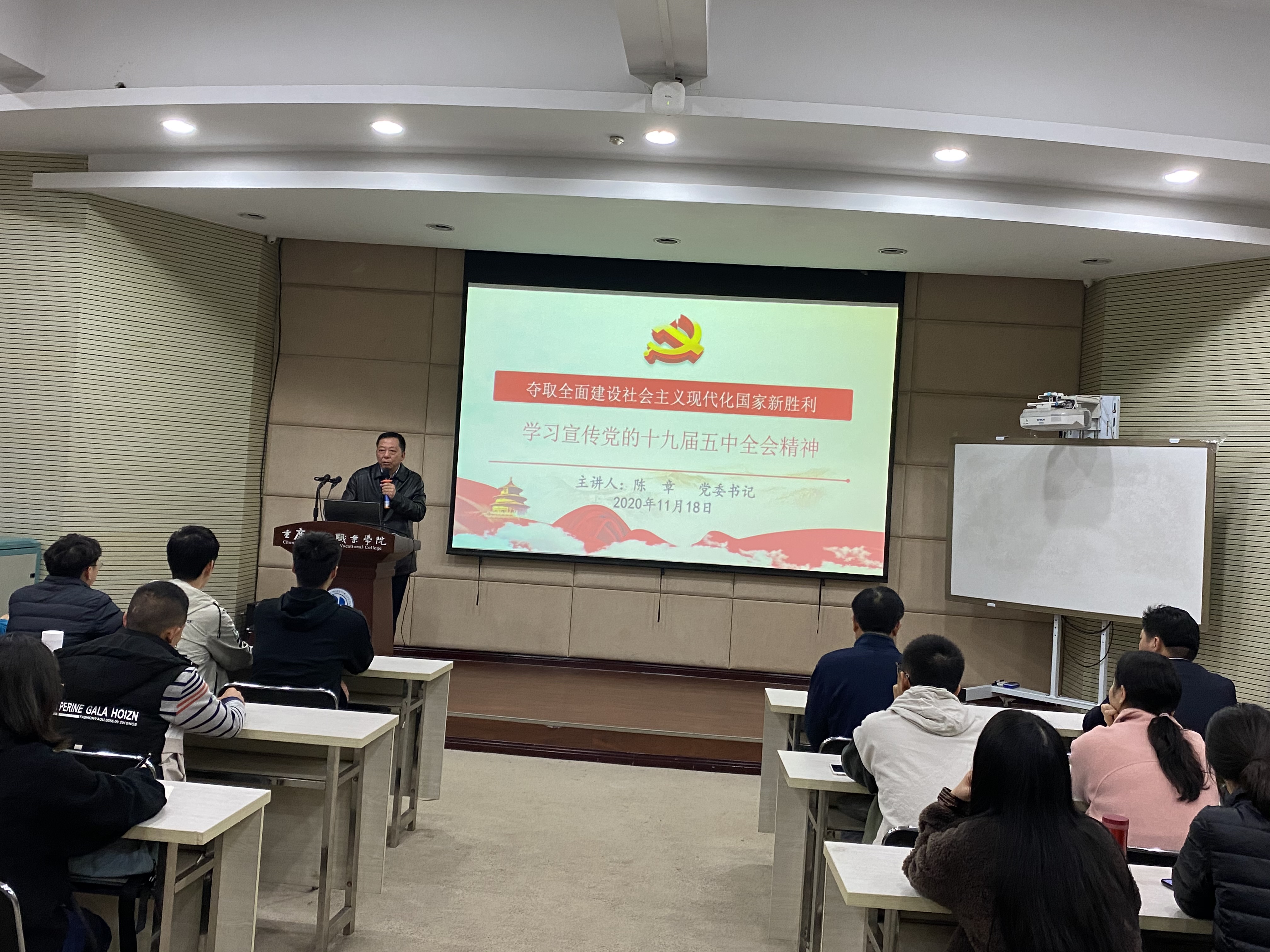 陈章书记围绕“学习宣传党的十九届五中全会精神”主题,从党的十九届五中全会基本情况、全会主要精神和学习宣传贯彻落实全会精神三个方面进行宣讲。