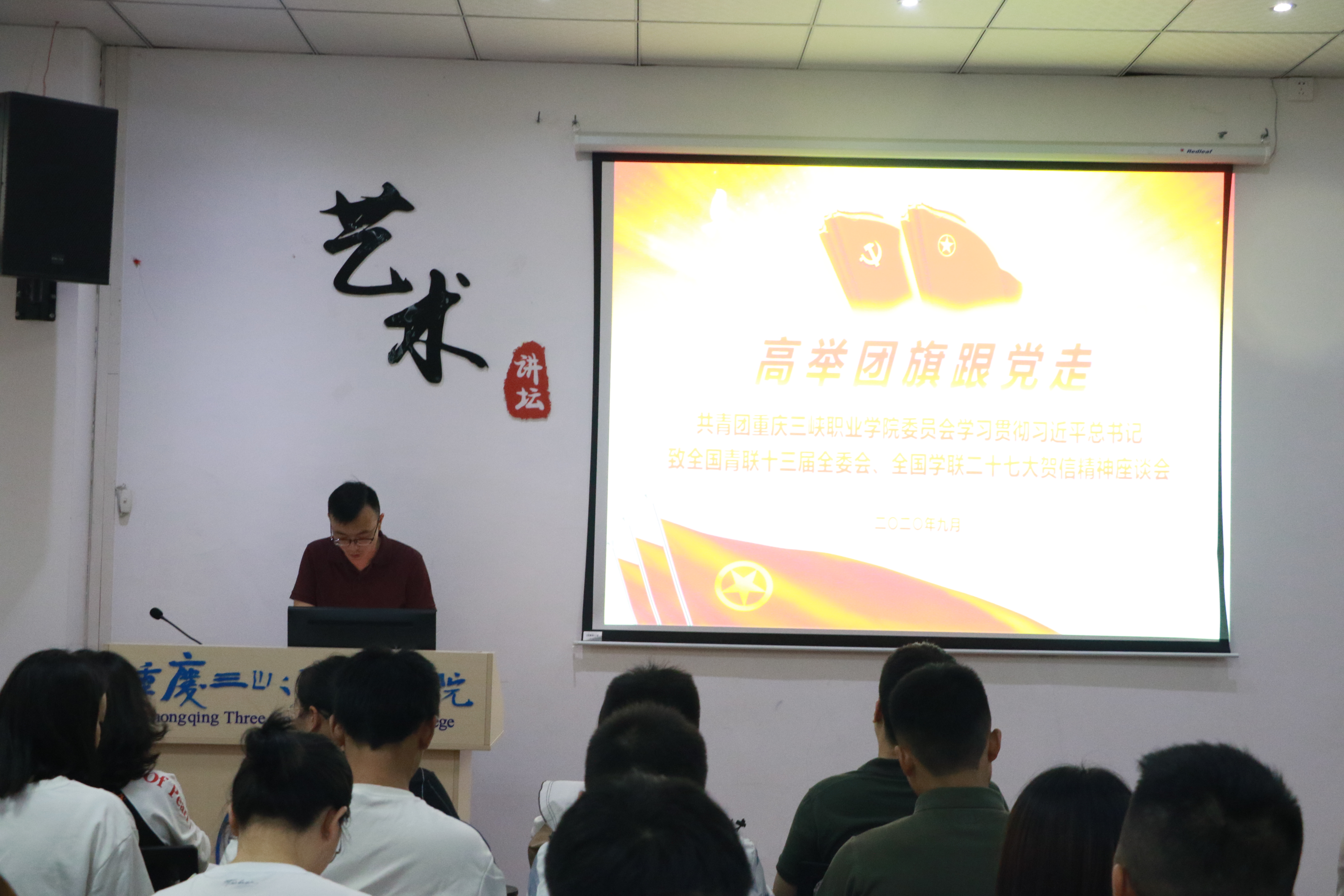 9月16日,校团委召开学习习近平总书记致全国青联十三届全委会和全国学联二十七大的贺信精神专题会议。校团委全体成员、二级学院团总支书记、校院两级学生会成员代表、“青马工程”学员代表、团支部书记、青年学生代表参加了会议。