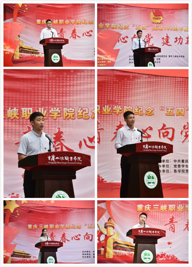农林科技学院团总支书记孙洪、动物科技学院2016级牧医7班刘庆良、经济管理学院2017级物流3班罗晓、智能制造学院2017级1班李行、人工智能学院2017级物联网1班陈珍、汽车工程学院汽检3班唐浩六位师生分别代表“红旗团总支”、“十佳青年学生标兵”、“十佳团支部书记”、“优秀共青团干部”、“感动校园人物”、“青年志愿者工作先进个人”获奖集体和个人做交流发言。大家的发言生动、具体、贴切、实际,为探索学校各级团组织科学化建设、创新性发展做出了“示范”,打出了“招牌”、塑造了“样板”,具有较强的现实引领性;五位同学还以青年学生的视角表达了对五四运动的历史意义和时代价值的理解,回忆了成长成才的奋斗历程,感谢了学校给予广大同学的良好育人环境、优厚师资力量和浓郁学习氛围,并鼓励广大同学在今后的学习生活中树目标、定方向,会学、好学、勤学,实现学理论、强思想与学技能、会创新的有效结合,以昂扬的斗志、饱满的热情、旺盛的干劲创造光彩夺目的锦绣前程。