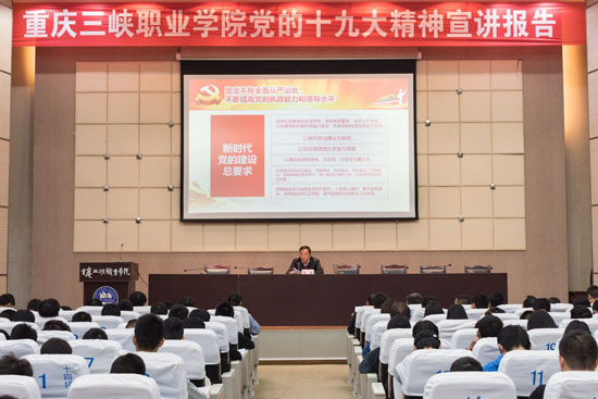 11月17日,重庆市学习贯彻党的十九大精神进校园宣讲分队成员、学院党委书记陈章对农业机械与车辆工程系300多名师生宣讲十九大精神。