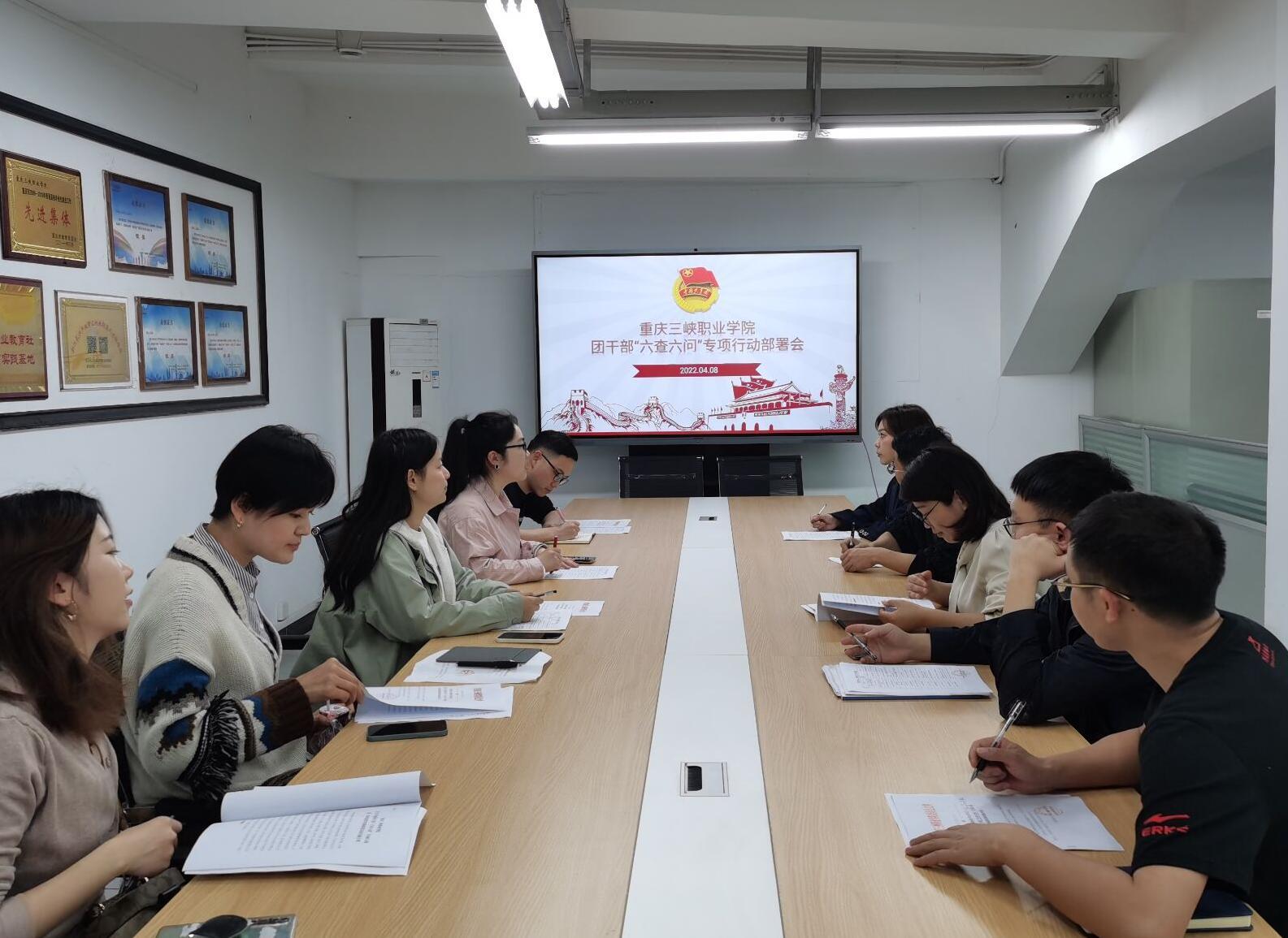 为深入学习贯彻习近平总书记对团干部提出的系列重要要求,认真落实共青团中央《新时代全面从严治团实施纲要》《关于提高政治站位改进工作作风的六条规定》精神,从严抓好团干部队伍作风建设、进一步改进作风狠抓落实。4月8日,学院召开团干部“六查六问”专项行动动员部署会。团委全体工作人员、各二级学院团总支书记参加会议。