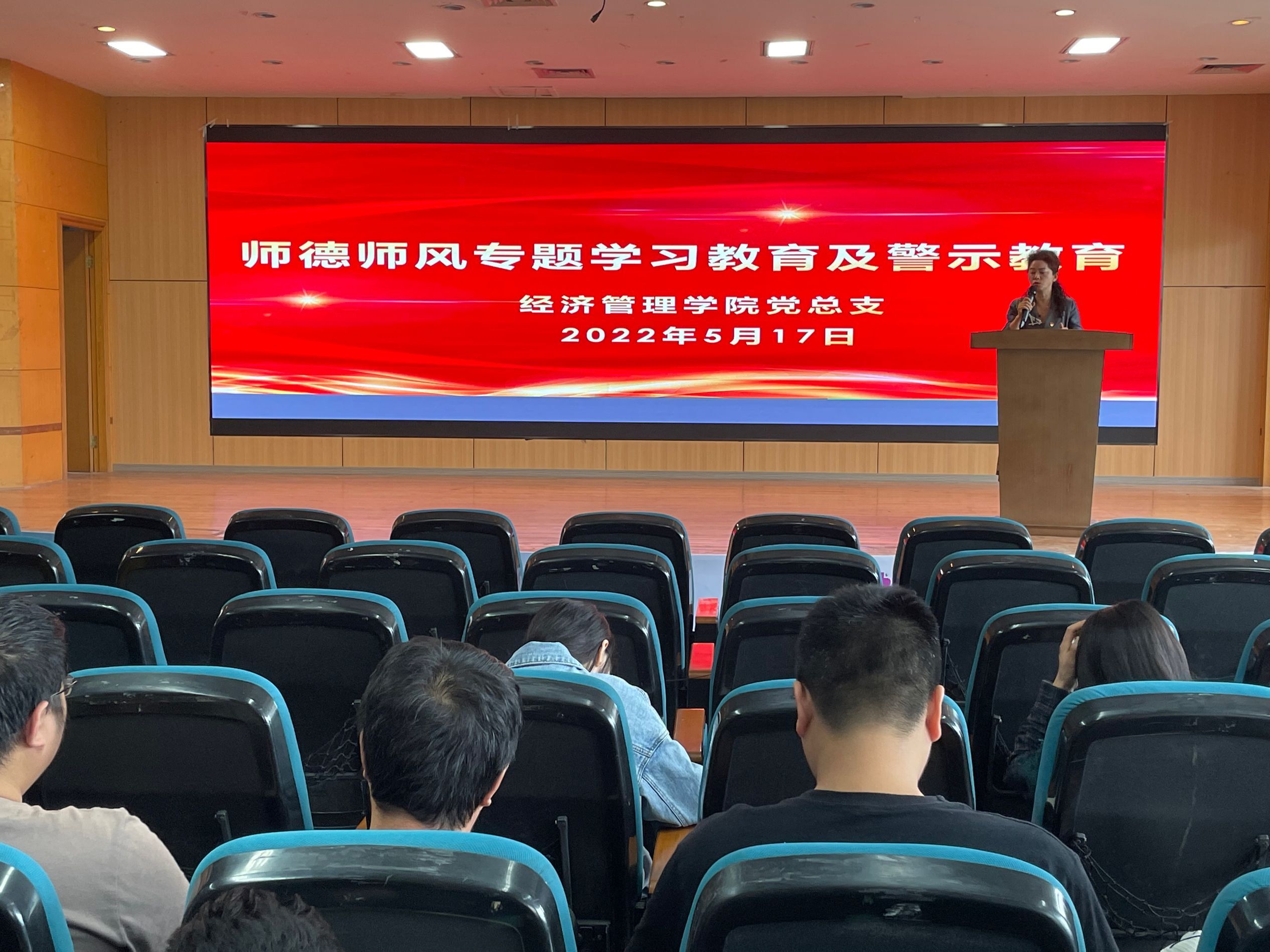为加强师德师风建设,牢固树立教书育人的使命感和责任感,为学院的长足发展保驾护航。5月17日下午,经济管理学院在沙龙校区综合楼2楼会议室开展了师德师风专题学习。会议由经济管理学院专职组织员李静主持,经济管理学院全体教职工参加了学习。