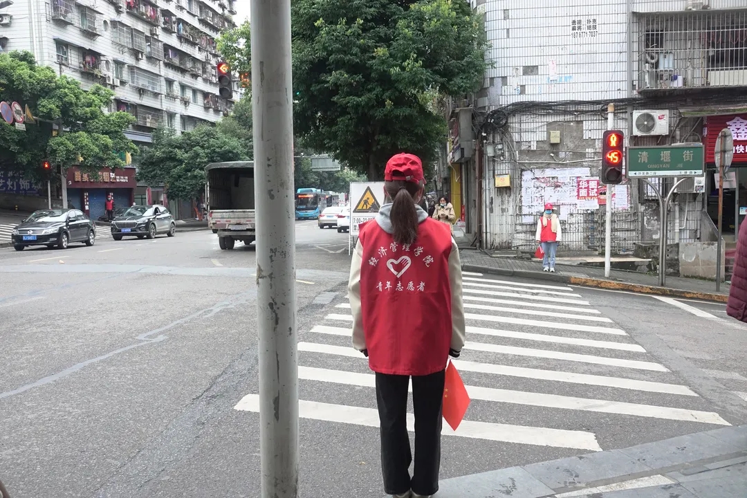 在本次活动中,第一支党支部近20名入党积极分子身着“红马甲”,头戴“小红帽”,手持“小红旗”,精神饱满地站在学校附近的各个交通路口,以热情有礼的谆谆引导,对非机动车闯红灯、越线等候红灯和行人闯红灯等不文明行为,进行文明劝导和协助纠正,以此维护道路交通秩序、引导市民安全文明出行。