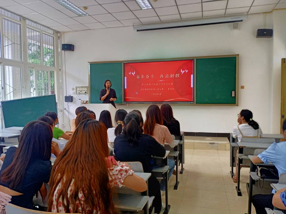 为深入学习贯彻党的十九届六中全会精神,以实际行动迎接党的二十大胜利召开。6月1日,经济管理学院党总支第三党支部书记黄巧仙以“百年奋斗 再启新程”为题,为支部党员师生上了一堂内容丰富、生动精彩的专题党课。