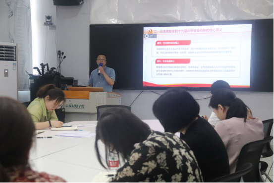 袁德梽副院长围绕着深刻认识党的十九届六中全会的重要历史地位、精准把握党的十九届六中全会精神的核心要义和重庆市第六次党代会报告全文学习展开讲解。