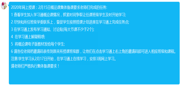按照“停课不停教、停课不停学”的工作要求,我校马克思主义学院“毛泽东思想和中国特色社会主义理论体系概论”教研室全体教师积极响应,快速行动,全力做好思政课教学工作。