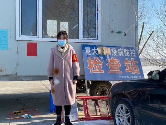 张蕊,我校经济管理学院18级会计2班学生。疫情期间,通过网络及学校的宣传了解到疫情形势严峻,主动申请加入内蒙古扎兰屯市大河湾镇大水泉村疫情防控工作,成为一名疫情防控志愿者,为家乡抗击疫情贡献自己的力量。张蕊的主要工作就是坚守在当地与黑龙江交界处的防疫卡点,排查登记来往车辆和人员信息,宣传疫情防护知识。