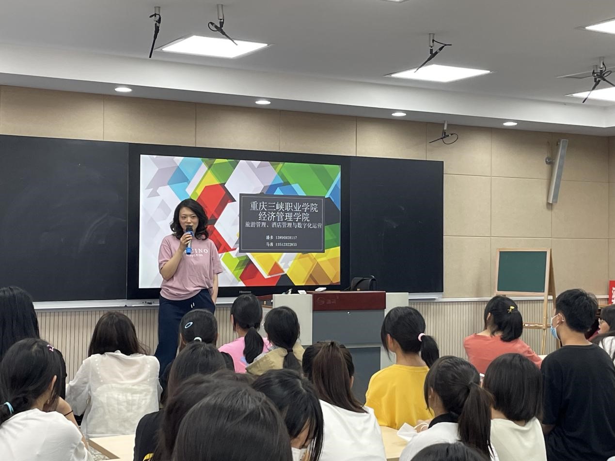 9月13日,经济管理学院副院长潘多带领酒店与数字化运营教研室主任马茜一行5人,赴梁平职业教育中心进行“3+2”专业宣讲及校校交流。
