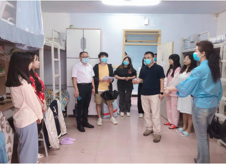 “同学们,你们住的习惯吗?适应了没?”“大家都来自哪里?”学院党总支书记、院长赵琳带领班子成员和全体辅导员深入新生宿舍,与同学们亲切交谈,关心新生生活方面的需求,确保新生有舒适的学习生活环境。一句句关心的话语让同学们倍感亲切和温暖,消除了面对新环境的忐忑。赵琳书记亲切叮嘱同学们要尽快适应大学生活,对大学进行合理规划,并提醒新生在宿舍要做好个人防护,遵守学校疫情防控规定,并鼓励大家在抗疫中成长,在磨砺中奋进。