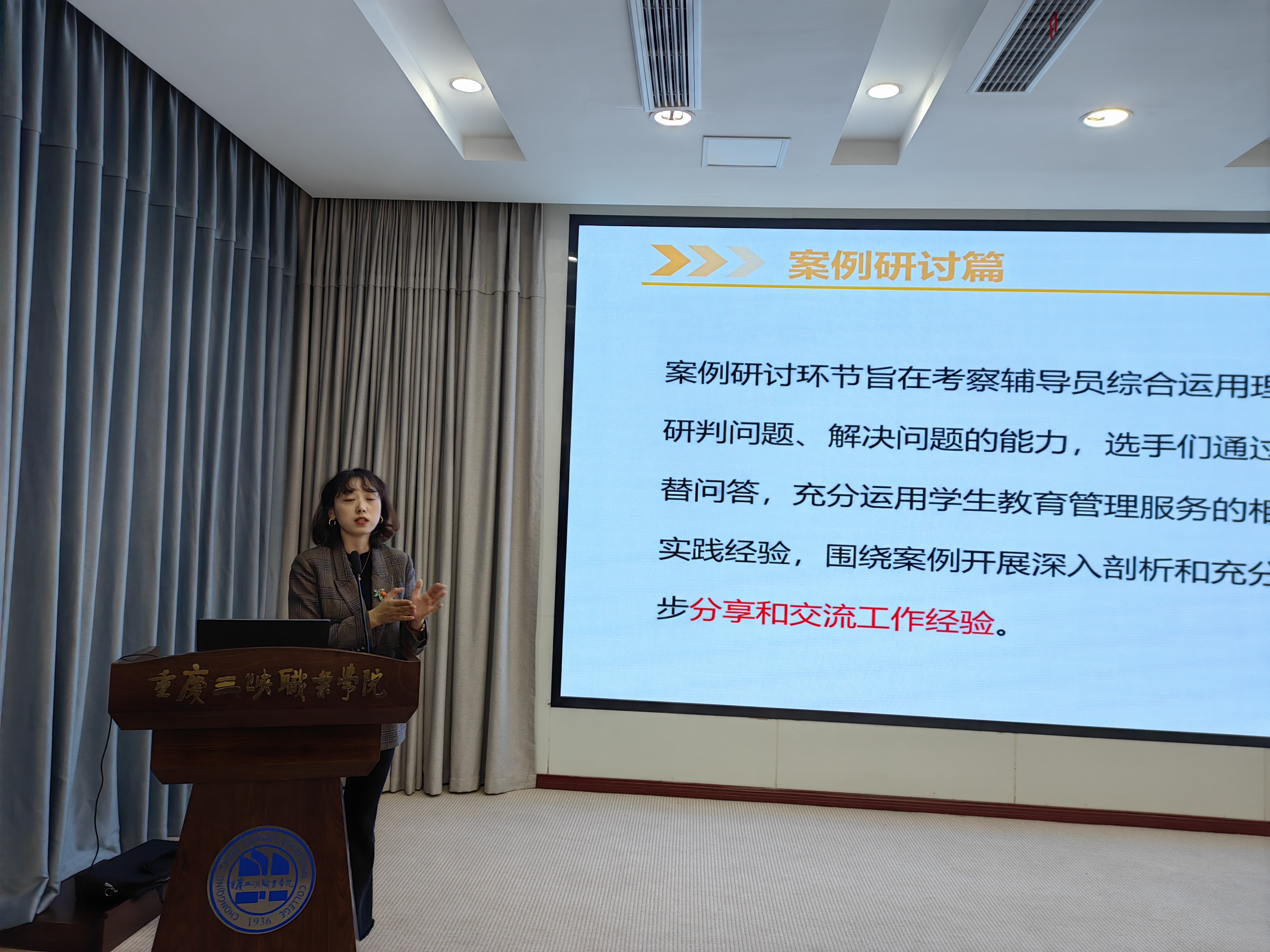 近日,重庆市“最美高校辅导员”、“重庆市高校辅导员年度人物”、“重庆市优秀辅导员”、“重庆市辅导员素质能力大赛一等奖”获得者史丽涛一行,受学工部邀请,为我校辅导员作了题为《把握三个转变,做好新时代高校辅导员》和《以钉钉子的精神做好“专职”辅导员》的专题讲座。学工部负责人、各二级学院党总支书记、学工科、全体专职辅导员参加了此次培训。