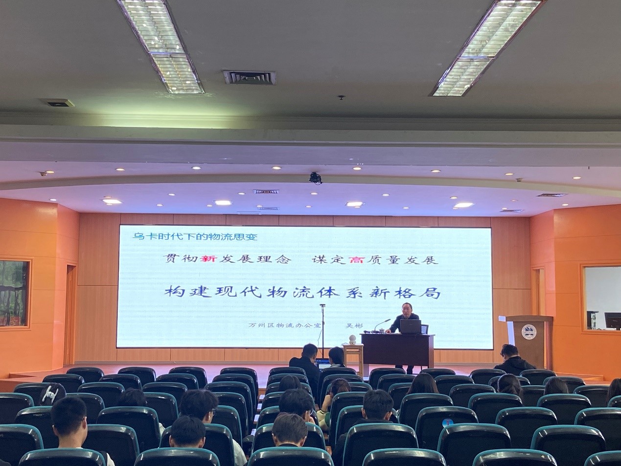 11月4日下午,万州区物流办副主任吴彬应邀到我院沙龙校区学术报告厅作题为“乌卡时代下的物流思变:贯彻新发展理念,谋定高质量发展,构建现代物流体系新格局——疫情影响下物流业发展分析与后续展望”的讲座。本次讲座由经济管理学院物流管理专业主任王平主持,物流管理专业全体师生参加学习。