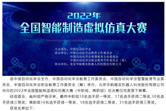 本次大赛由中国自动化学会主办,中国自动化教育工作委员会等部门承办,经组委会严格评审,高职组10名选手获得一等奖,18名选手获得二等奖,31名选手获得三等奖。
