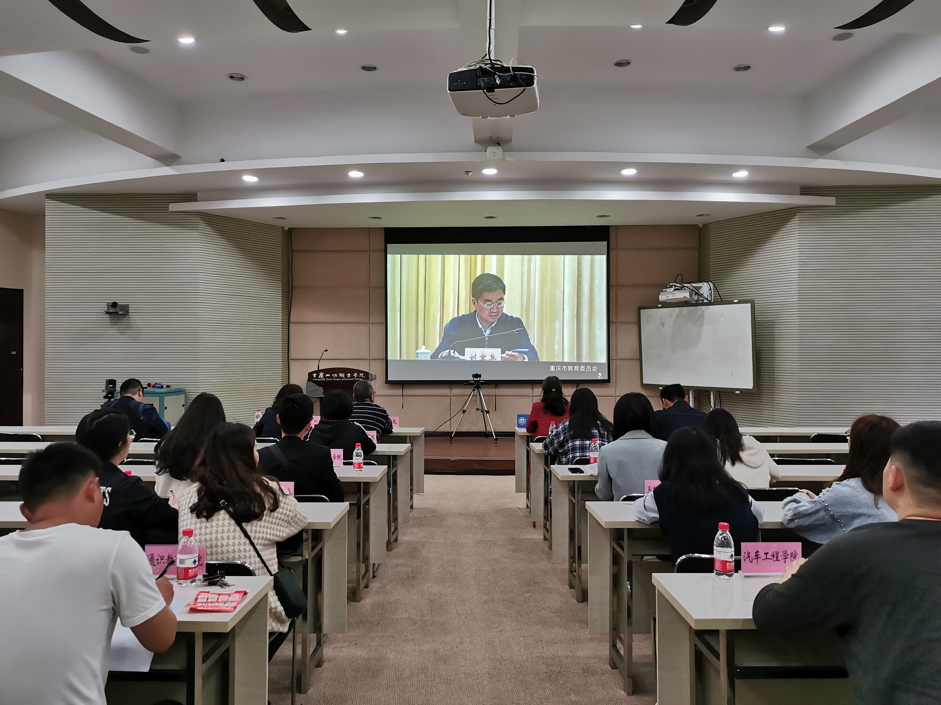 为深入贯彻2023年全国、全市教育工作会议精神,加快落实教育部加强新时代教育科研工作意见要求,进一步发挥教育科学研究对教育改革发展的重要支撑、驱动和引领作用。4月14日,重庆市教育委员会召开2023年全市教育科研工作会议,我院通过视频会议直播方式在分会场参会。学院院长李炯光、教务处、科研处、各二级学院教师代表及科研联络员参会。