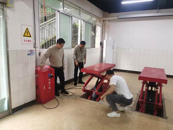本次集中安全检查主要集中在综合楼、汽车实训中心、农机工程实训中心、汽车工程学院办公楼四个区域,重点检查了压力容器、举升机的运行情况,各实训室配电问题,充电桩运行情况,燃油汽车燃油泄露风险,新能源汽车高压风险,汽柴油的使用存储消防安全风险等。