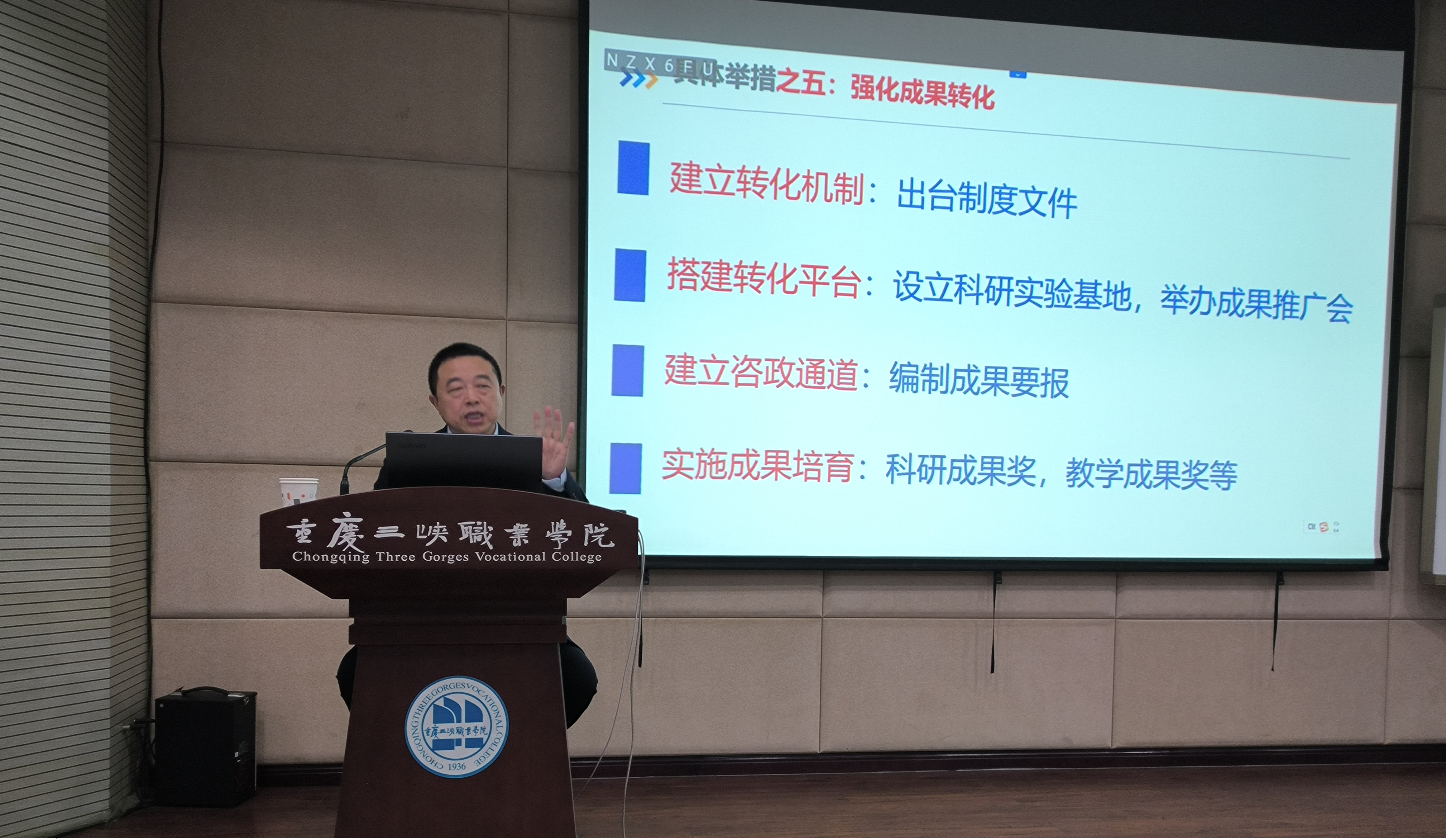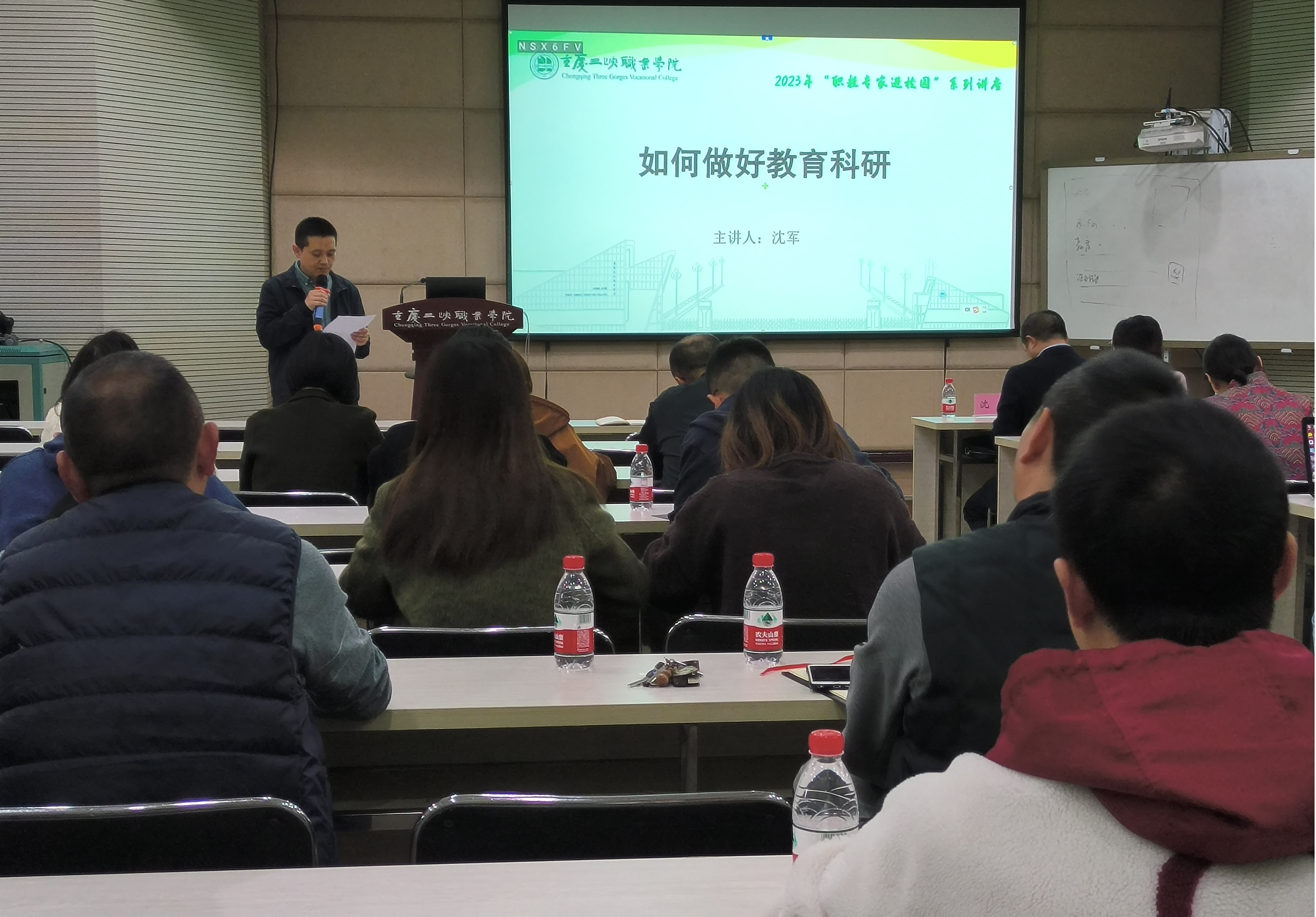近日,教务处组织开展了2023年“职教专家进校园”系列讲座(二)——“如何做好教育科研”专题培训会。培训会邀请了重庆市教育科学规划办公室副主任、市教科院科研处处长沈军现场授课,教务处副处长刘艳宾主持会议,各二级机构教改课题在研人员和骨干教师代表等近百人参加了培训。