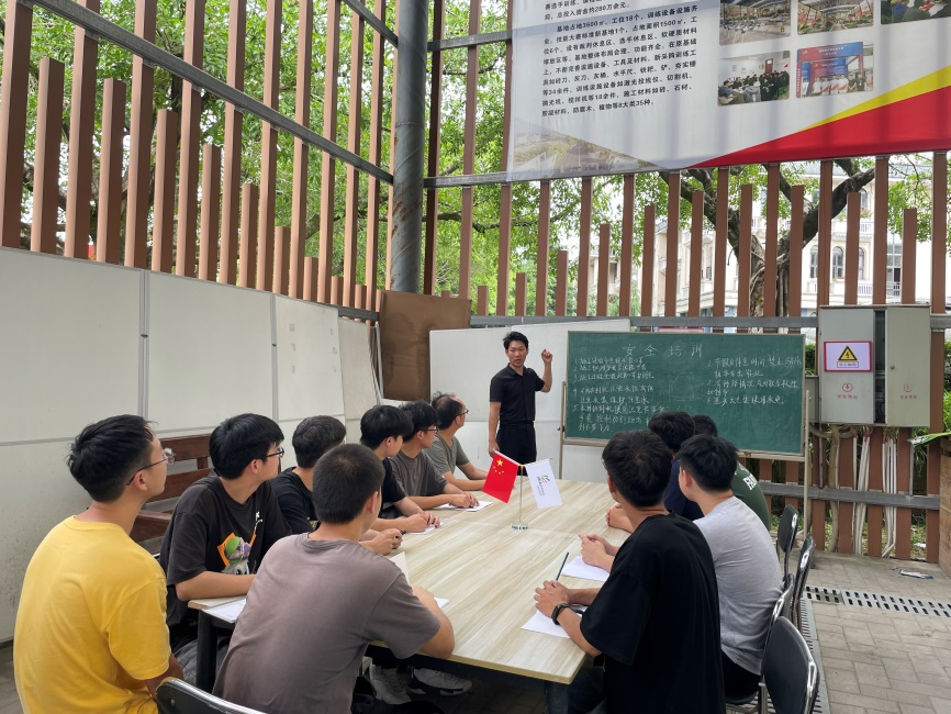 为确保世界技能大赛园艺项目国家辅基地正常运转,保障训练安全。5月31日,项目教练温康等人针对训练当中的安全操作及日常安全作息开展讲解说明会议,全体施工选手参加。本次讲解主要包括各种机具的安全使用及日常休息外出的注意事项。世界技能大赛园艺项目使用电动工具居多,包括大型石材切割、大型木材切割机、手持切割机等二十余种电动工具,为加强基地危险性设备的安全运行,项目教练温康对基地使用的各种机具对全体施工选手进行一次规范操作培训,针对各种电动工具的操作步骤、注意事项及管理规定进行了示范和讲解,进一步强化了大家的安全意识 。