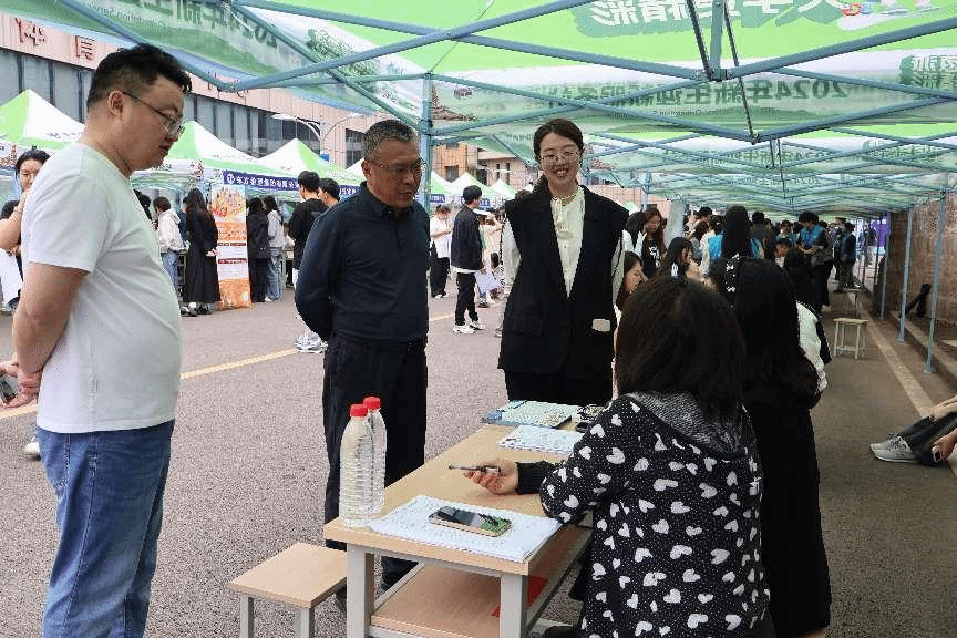 为积极拓宽毕业生和用人单位沟通渠道,持续探访就业市场,推动毕业生高质量充分就业,4月26日上午,校长李炯光、副校长袁德梽前往动物科技学院2025届毕业生专场招聘会现场访企拓岗,与企业人力总监建立联系,为2025届毕业生拓展招聘资源库。