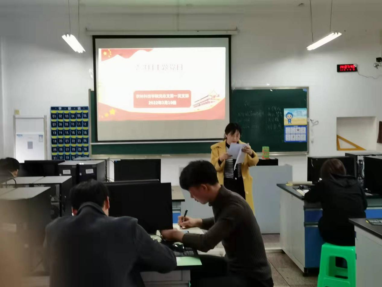 3月10日,农林科技学院党总支第一党支部在农林楼607开展2-3月份政治理论学习,会议由支部书记邓燕红同志主持。