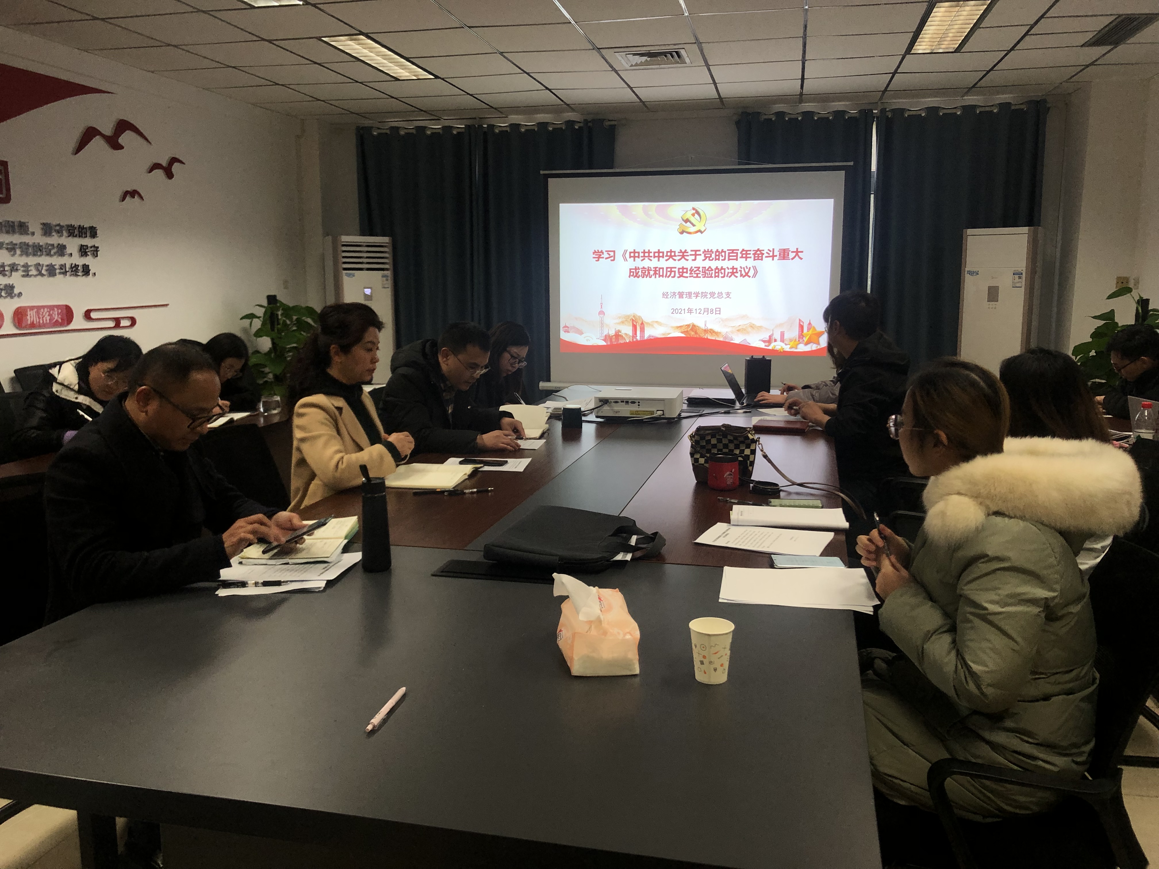 会上,首先由赵琳带领全体教职工学习了《中共中央关于党的百年奋斗重大成就和历史经验的决议》。赵琳强调,党的十九届六中全会是在我们党成立一百周年的重要历史时刻、“两个一百年”奋斗目标历史交汇的重大历史关头召开的一次重要会议,充分体现党牢记初心使命、永葆生机活力的坚强意志和坚定决心,充分体现党深刻把握历史发展规律、始终掌握党和国家事业发展的历史主动和使命担当,充分体现党立足当下、着眼未来、注重总结和运用历史经验的高瞻远瞩和深谋远虑;《决议》作为党历史上第三个历史决议,必将对推动全党统一思想、统一意志、统一行动,团结带领全国各族人民以史为鉴、开创未来、埋头苦干、勇毅前行,在新时代坚持和发展中国特色社会主义,实现中华民族伟大复兴,产生重大而深远的意义。全体教职员工要把深入学习贯彻党的十九届六中全会精神作为当前和今后一个时期的重大政治任务,深刻领悟《决议》的主要内容和核心要义,引领指导学院各项工作蓬勃开展,奋力谱写经济管理学院发展新篇章。