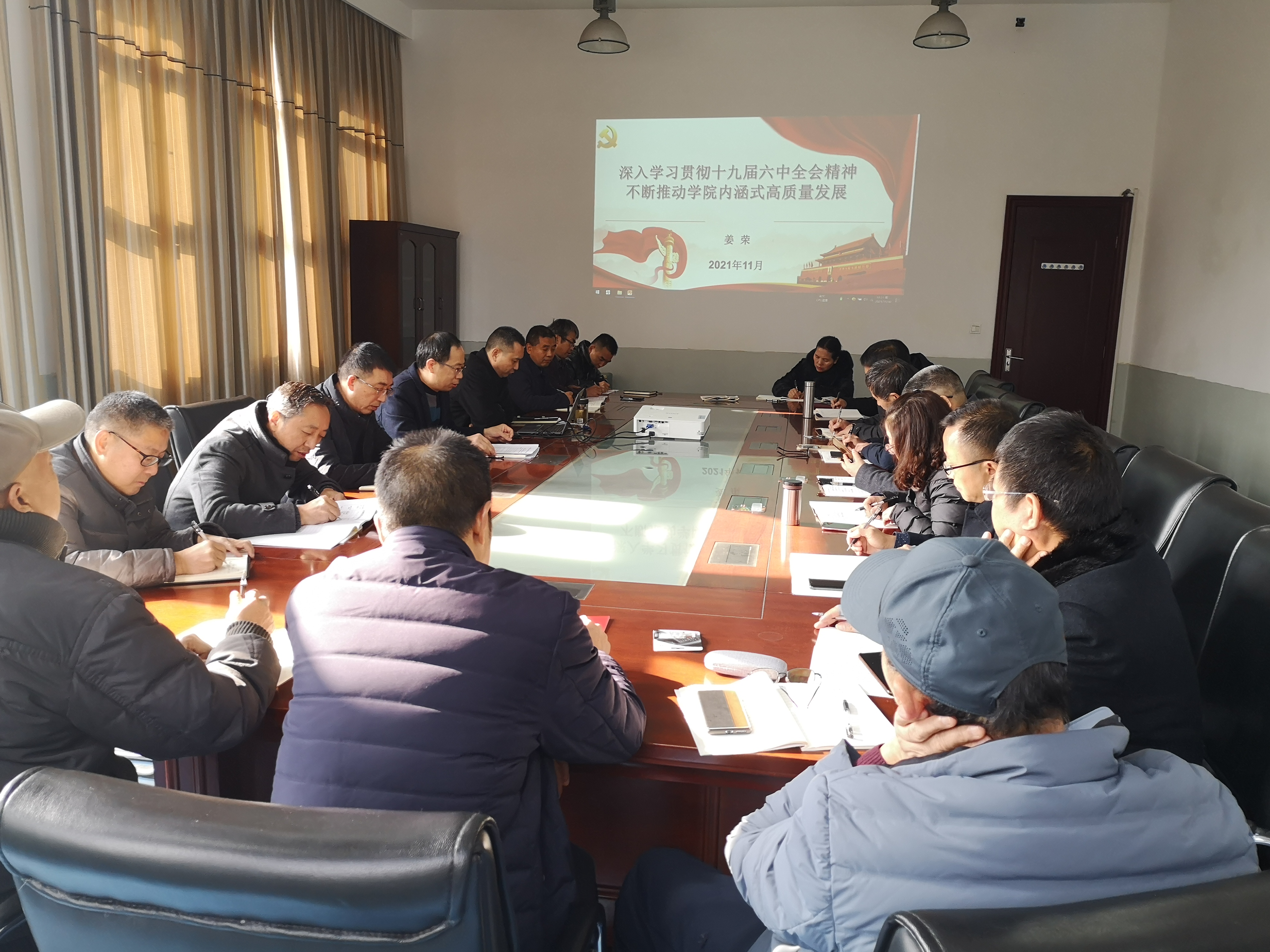 为进一步传达学习贯彻党的十九届六中全会精神,安排部署贯彻落实工作。11月30日上午,质量保证与评估中心在行政楼312会议室召开了十九届六中全会精神专题学习会。会议邀请了学院党委委员、宣传部部长姜荣同志开展题为“深入学习贯彻十九届六中全会精神 不断推动学院内涵式高质量发展”的专题讲座。