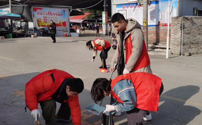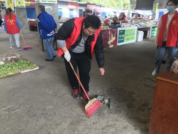 志愿者们来到社区附近的菜市场和居民小区等场所,一组负责清理菜市场公共区域各角落的杂物、垃圾纸屑、周边的杂草、绿化带内的白色垃圾;另一组负责知识宣传,现场讲解疫情时代维护公共卫生环境的重要性,提醒社区居民不乱扔垃圾、不随地吐痰,积极带好口罩等,提高居民们的卫生意识、构建人类卫生健康共同体。