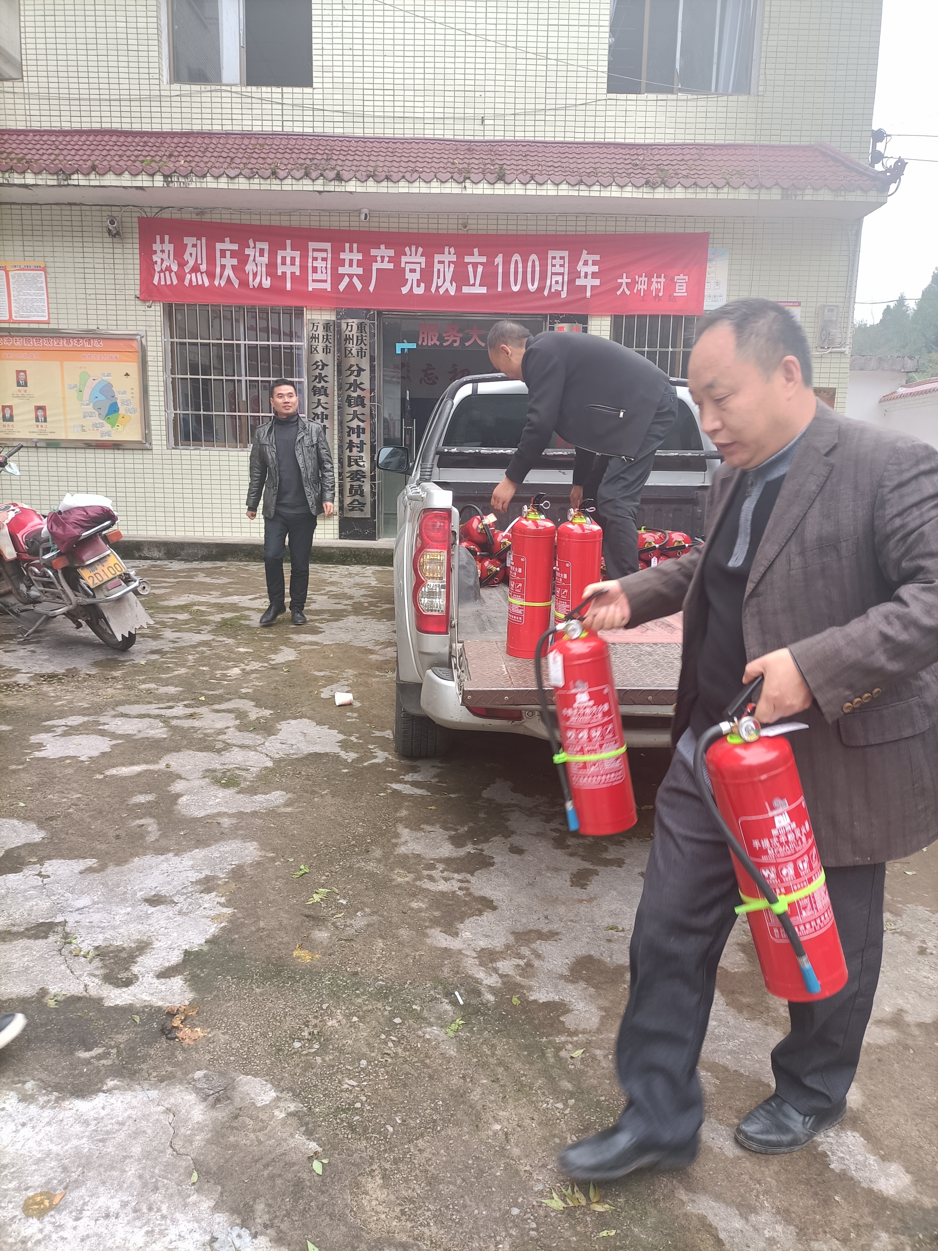 “我们村在消防建设方面还有所欠缺,特别进入秋冬季,村民的防火意识不高,消防设施设备不齐全,还希望学院能予以指导支持”,大冲村驻村第一书记扶永辉书记说到。安全处接到反馈后,立即准备50具灭火器,25个灭火器箱等消防设施设备,第一时间送到了村里,指导支持大冲村的消防建设,保证村里的消防设施设备完备。