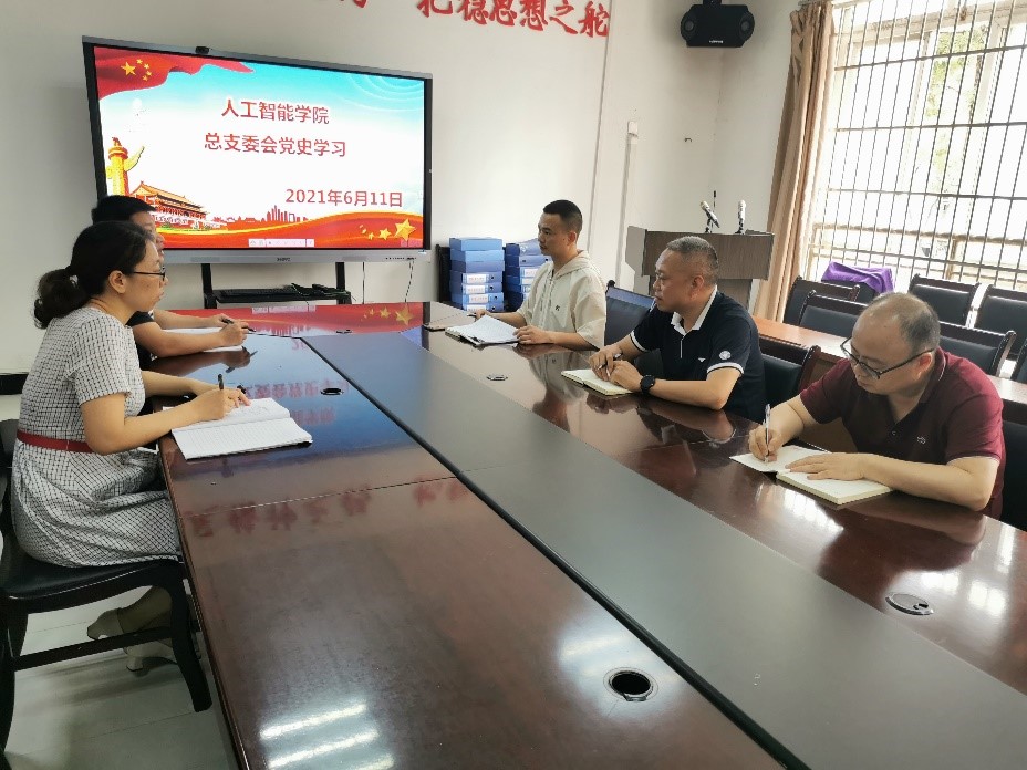 2021年6月11日,人工智能学院党总支委员会在信科楼503会议室开展党史学习教育。会议由人工智能学院党总支书记熊泽明主持。