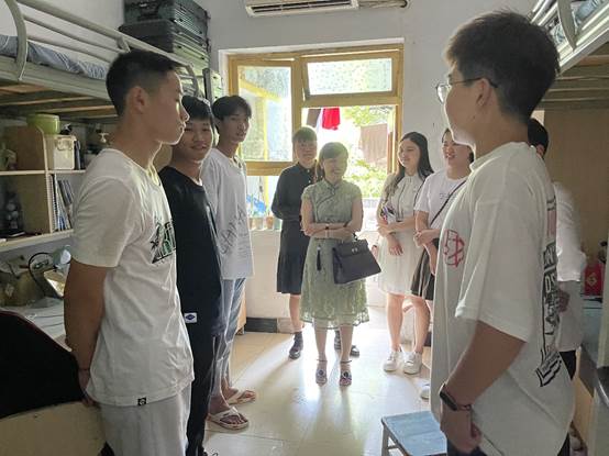 6月7日中午,支委班子带领部分党员走进学生宿舍C栋420、424寝室,关心同学们学习生活情况,与同学们亲切交流。交谈中,支部书记蒋奕勇对宿舍卫生、寝室布置、个人精神面貌给予充分肯定和表扬,鼓励同学们认真学习、努力提升专业技能,以“大国工匠”精神激励自身成长。教导同学们一定要热爱所学专业,竭尽所能报效祖国,实现人生价值。两名支委叮嘱同学们一定加强自我保护意识,注重寝室用电安全、个人外出安全和财产安全,平时要合理安排好个人时间,学习玩耍两不误,不负青春时光。