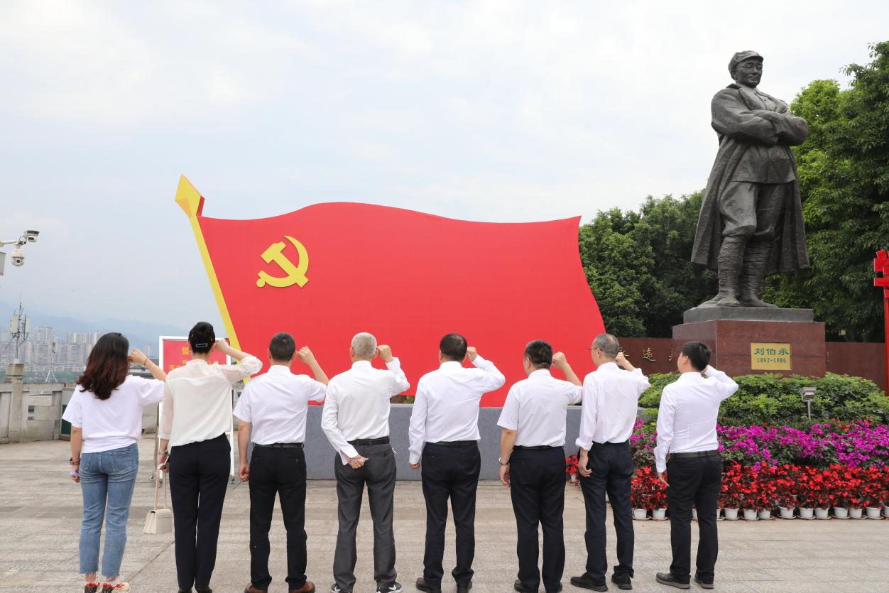 不忘初心,与党同心。参观结束后,党委书记陈章一行在纪念馆前刘伯承同志铜像处合影,并面对党旗进行了庄严的宣誓,重温入党誓词。