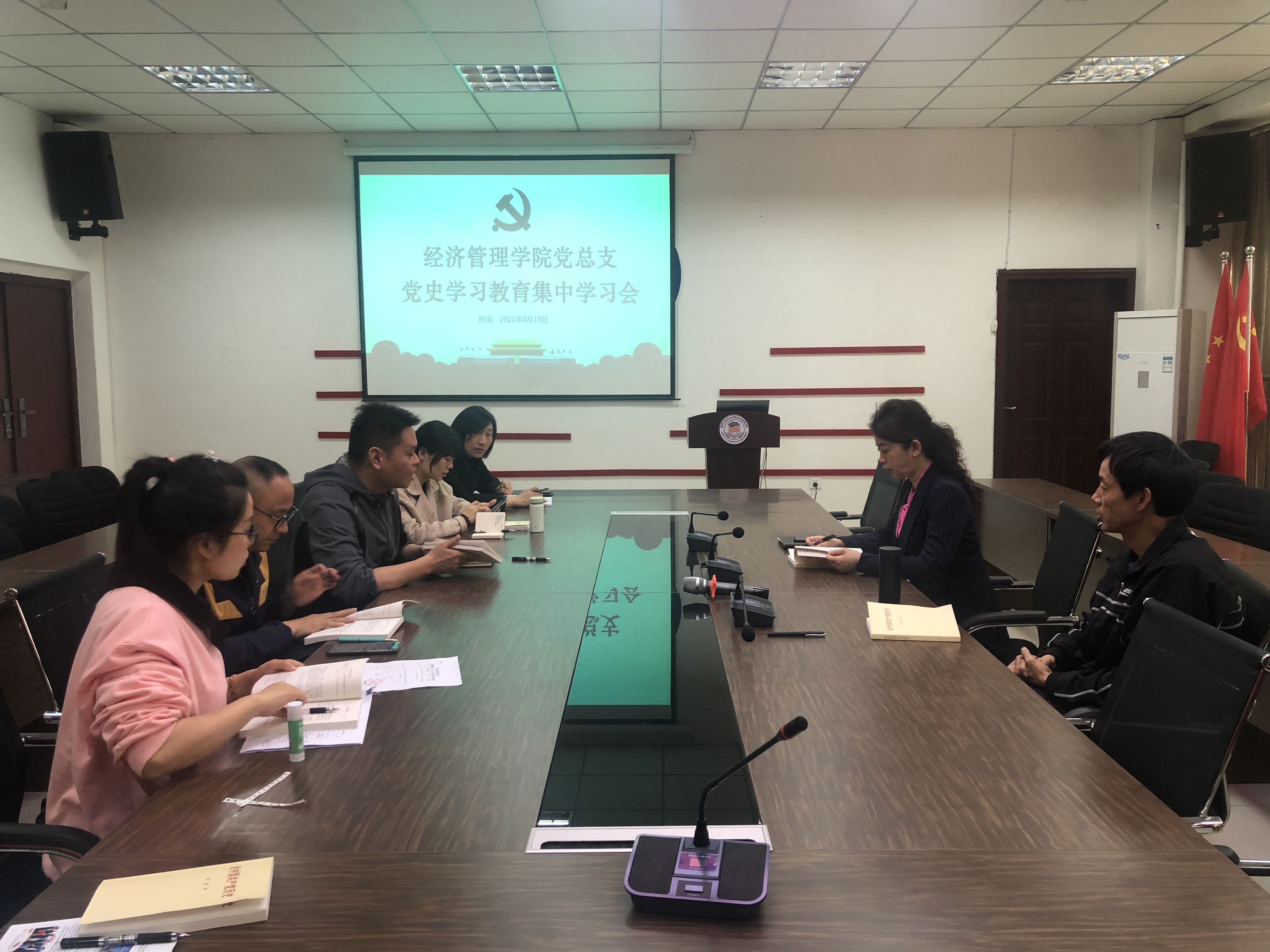4月19日下午,经济管理学院党总支在奥训楼506会议室召开党史学习教育集中学习会,学院党总支委员、支部书记参加了学习,会议由党总支书记、院长赵琳主持。