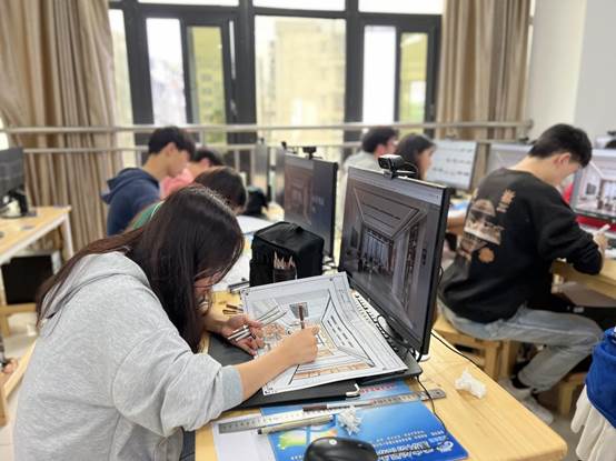 本次考试分为理论、实操两部分。理论部分重点考查考生对室内制图相关知识、室内设计基础知识、空间形态构成知识、人体工程学的掌握及理解,对施工工艺、质量验收、技术资料管理及设计服务与管理等知识的熟悉和了解;实操部分重点考核考生作为施工图深化人员应具备的能力,包括看图识图、图纸深化、效果表达的能力及对制图规范的理解和应用能力等。考生需在理论实操两部分各达60分及以上才算通过考核。在时间紧、任务重的情况下,为确保考生取得理想成绩,建筑室内设计专业教师团队认真进行考前辅导,多次组织学生考前强化训练。