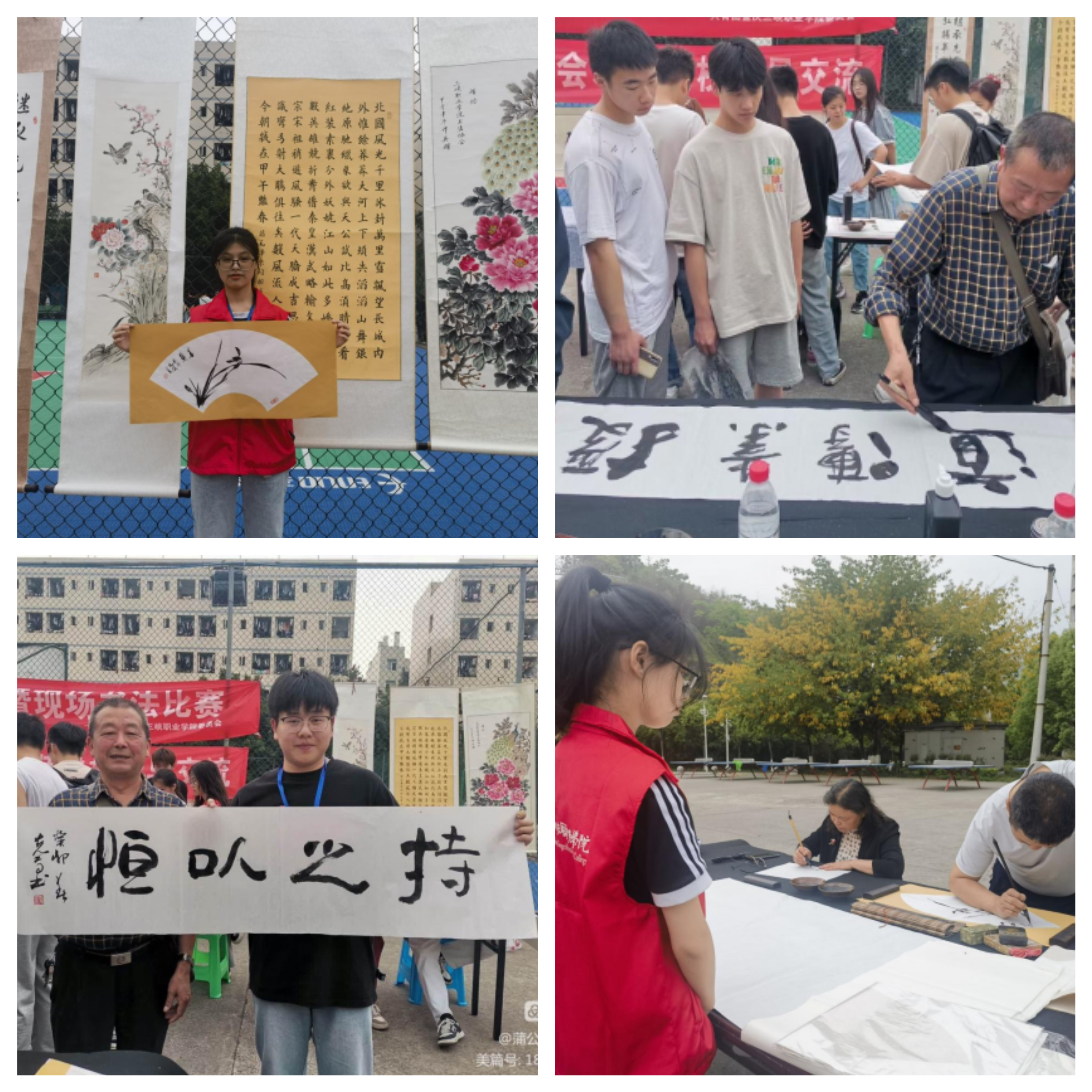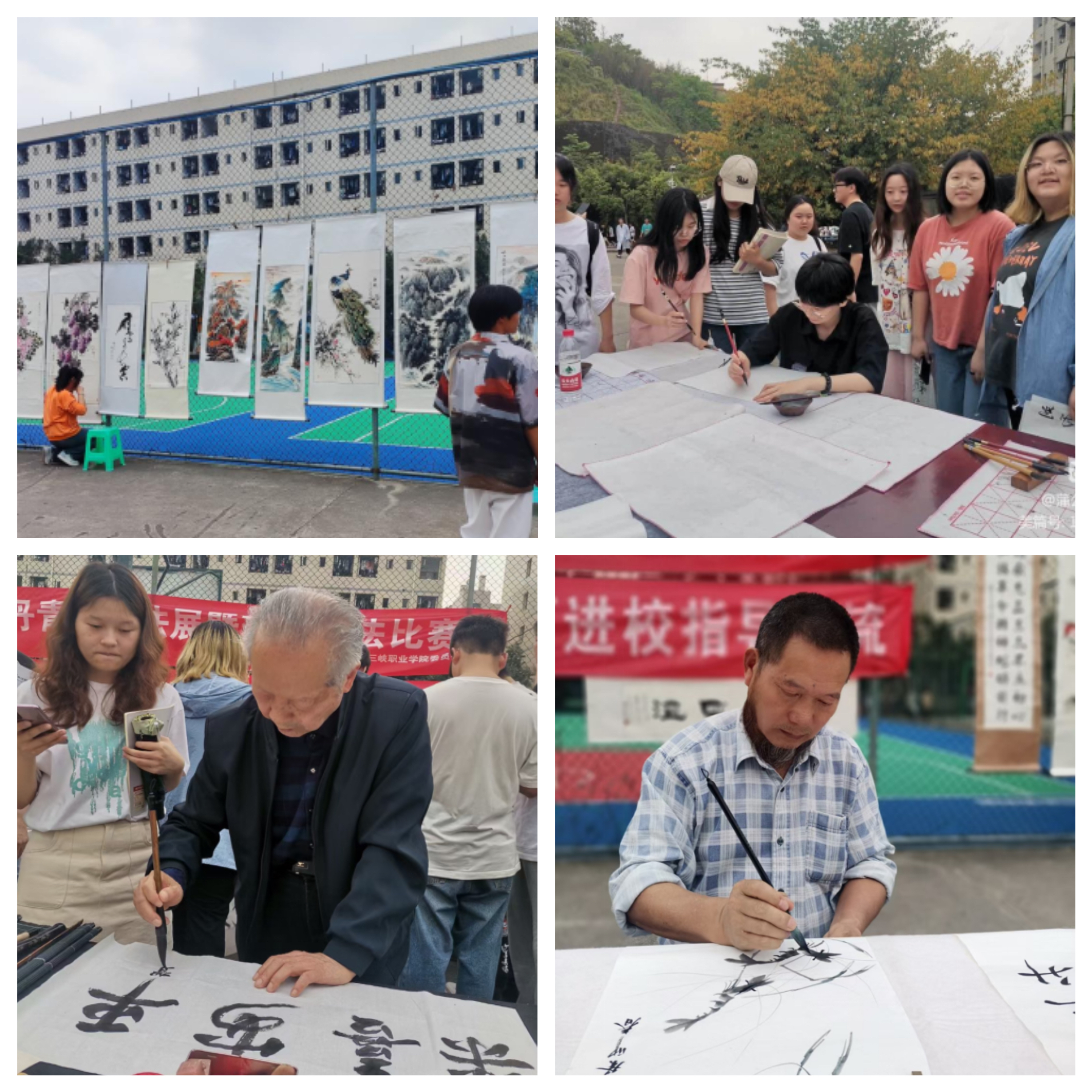 本次比赛邀请了万州工艺美术家协会的老艺术家们进校园进行书法现场书法展、并为观众赠送字画。