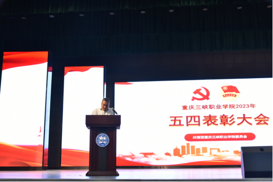 大会在雄壮嘹亮的国歌中拉开帷幕。表彰大会上,党委委员、纪委书记王凯宣读了《共青团重庆三峡职业学院委员会关于表彰2022年度“优秀共青团员”“优秀共青团干部”“五四红旗团总支”等先进集体和个人的决定》。