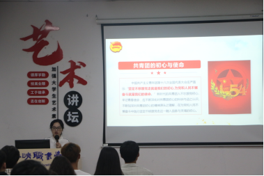 院团委李媛媛老师带领大家学习了中国共产主义青年团自诞生以来,在中国共产党的领导下,不断发展壮大的革命历史。青年是整个社会中一部分最积极最有生气的力量,要进一步增强责任感和使命感,不断把共青团事业推向前进。最后,她向全体入团积极分子介绍了团歌创作背景和发展历史,大家共同唱响《光荣啊,中国共青团》,在青春昂扬的旋律中感受革命先辈的理想和担当。