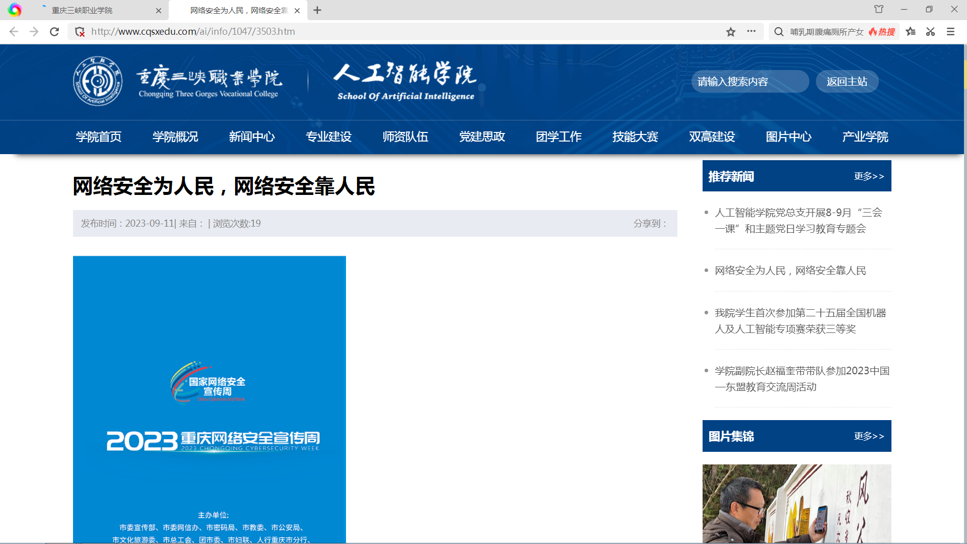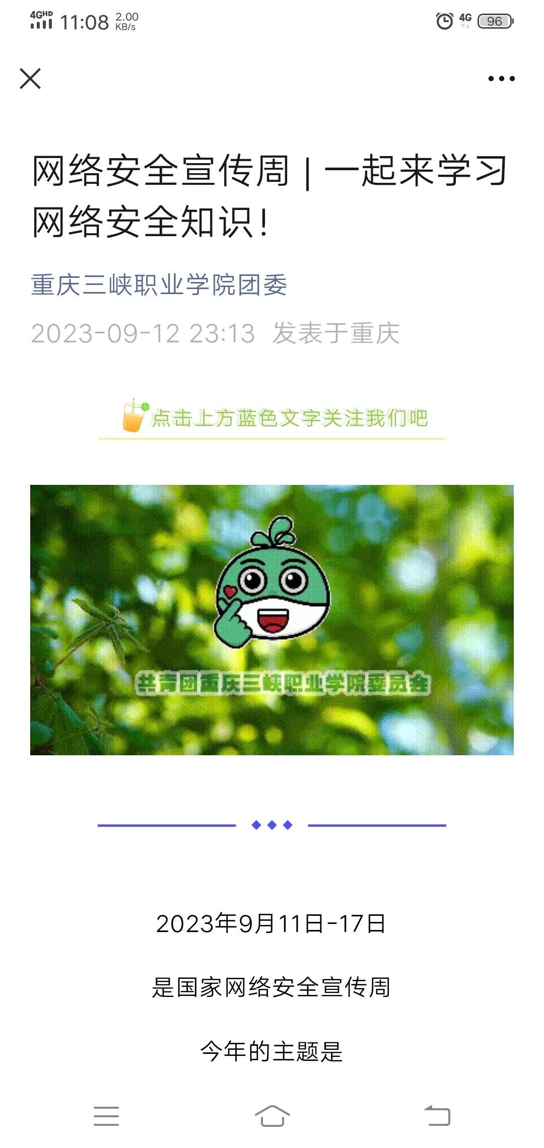 为贯彻落实习近平总书记对国家网络安全工作的重要指示,提升全民网络安全意识和技能,引导学院师生树立正确的网络安全观,提高网络安全意识,营造安全、健康、文明的网络环境,按照市教委统一部署,学院于2023年9月11日至17日,开展了主题鲜明、内容丰富、形式多样的网络安全宣传周系列活动。本次网络安全宣传周活动由学校网络安全信息中心牵头,学生处、团委和各二级学院积极配合并大力宣传,营造全员参与的氛围。