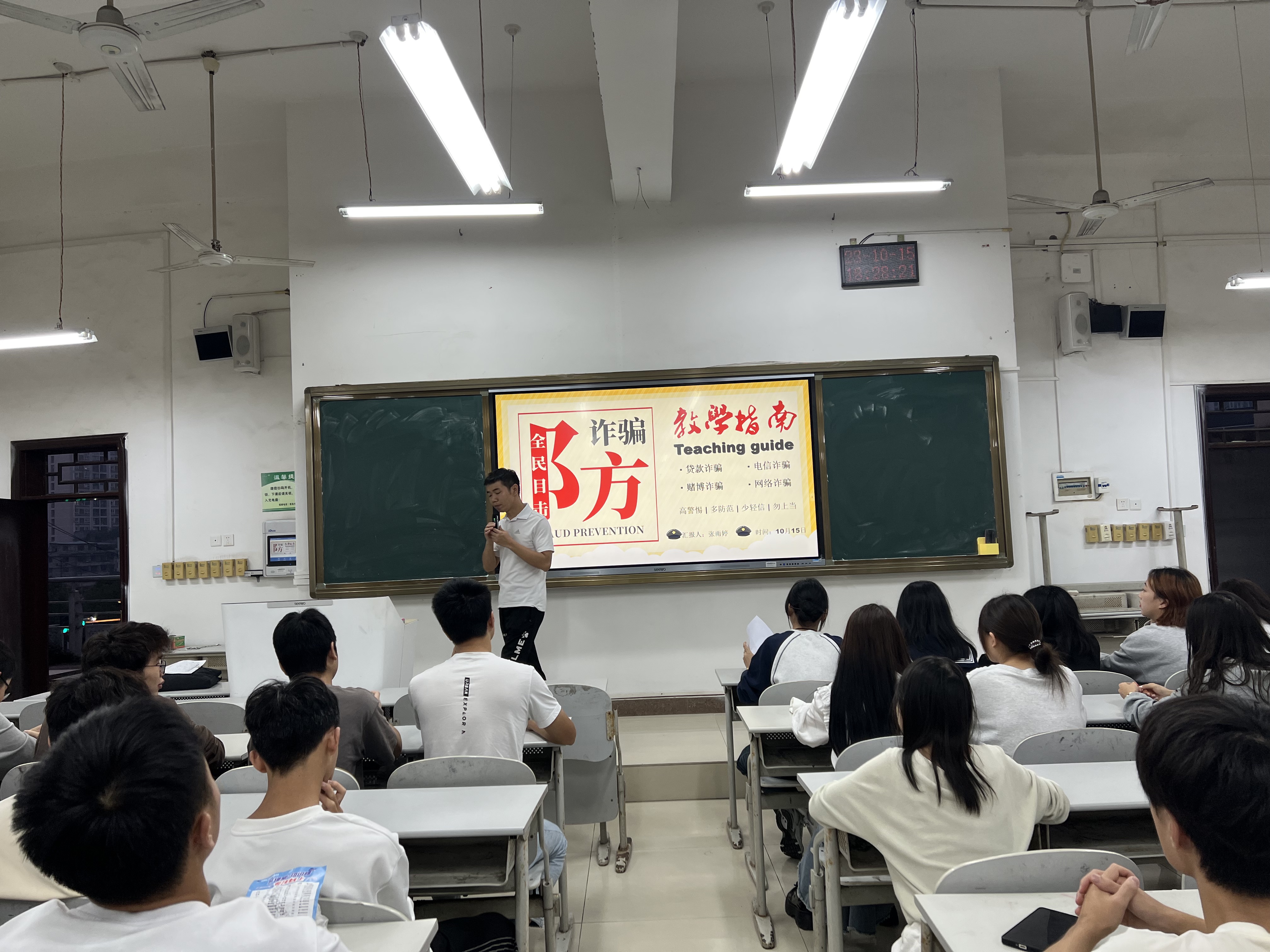 二是积极联系辖区派出所专题开展拒赌反诈、网络安全等线下宣教活动,重点针对拒赌防骗反诈、反邪教、网络安全、反恐怖主义等内容进行了宣讲,警官现场指导同学们认真学习拒赌反诈相关安全知识,发放宣传资料5000余份。