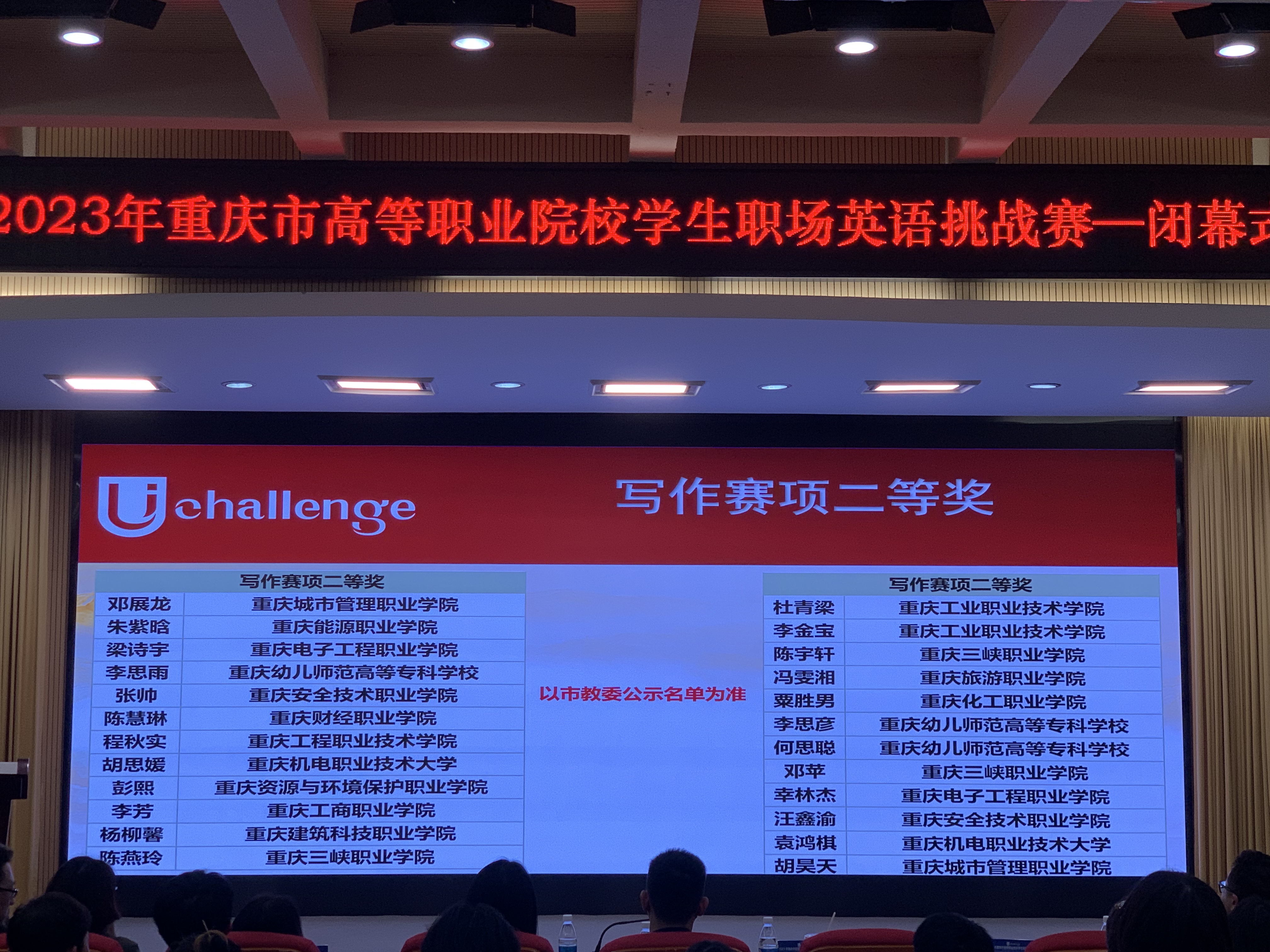 11月18日,由重庆市教委主办、重庆城市管理职业学院承办、外语教学与研究出版社协办的2023年重庆市高等职业院校学生英语挑战赛”落下帷幕。