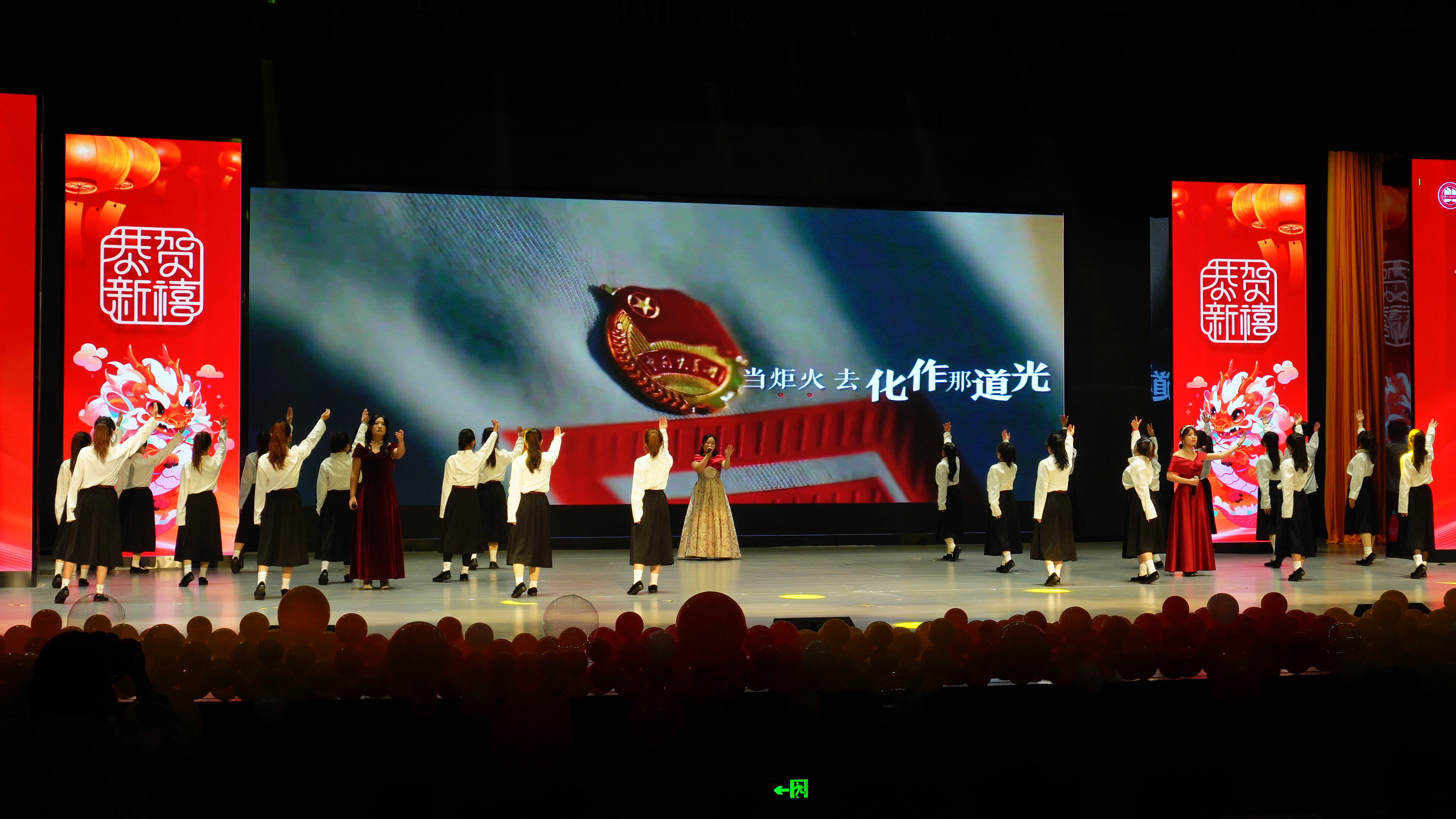 今年的元旦汇演分为“忆·峥嵘岁月”、“颂·致敬经典”、“展·奋斗华章”三个篇章,以歌曲、舞蹈、情景朗诵、器乐表演、杂技等多种艺术表现形式,为广大师生带来了一场精彩纷呈的视听盛宴。同时,学院还通过网络直播的方式与未到场的师生们共享辞旧迎新之喜。