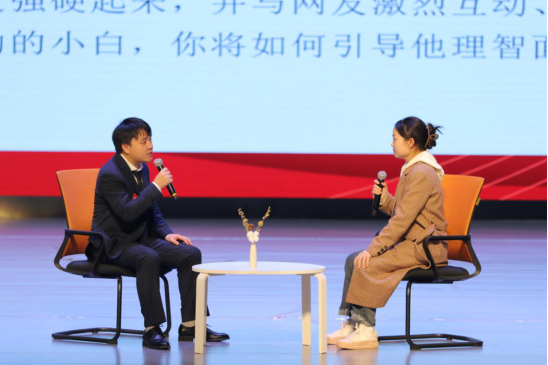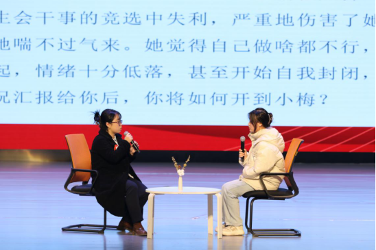 谈心谈话主要考察辅导员对学生的教育引导能力和解决实际问题的能力,参赛选手和学生助演通过题目设定在现场还原了平时工作中为学生答疑解惑的各种情景,精彩的互动赢得了在场观众的阵阵掌声。