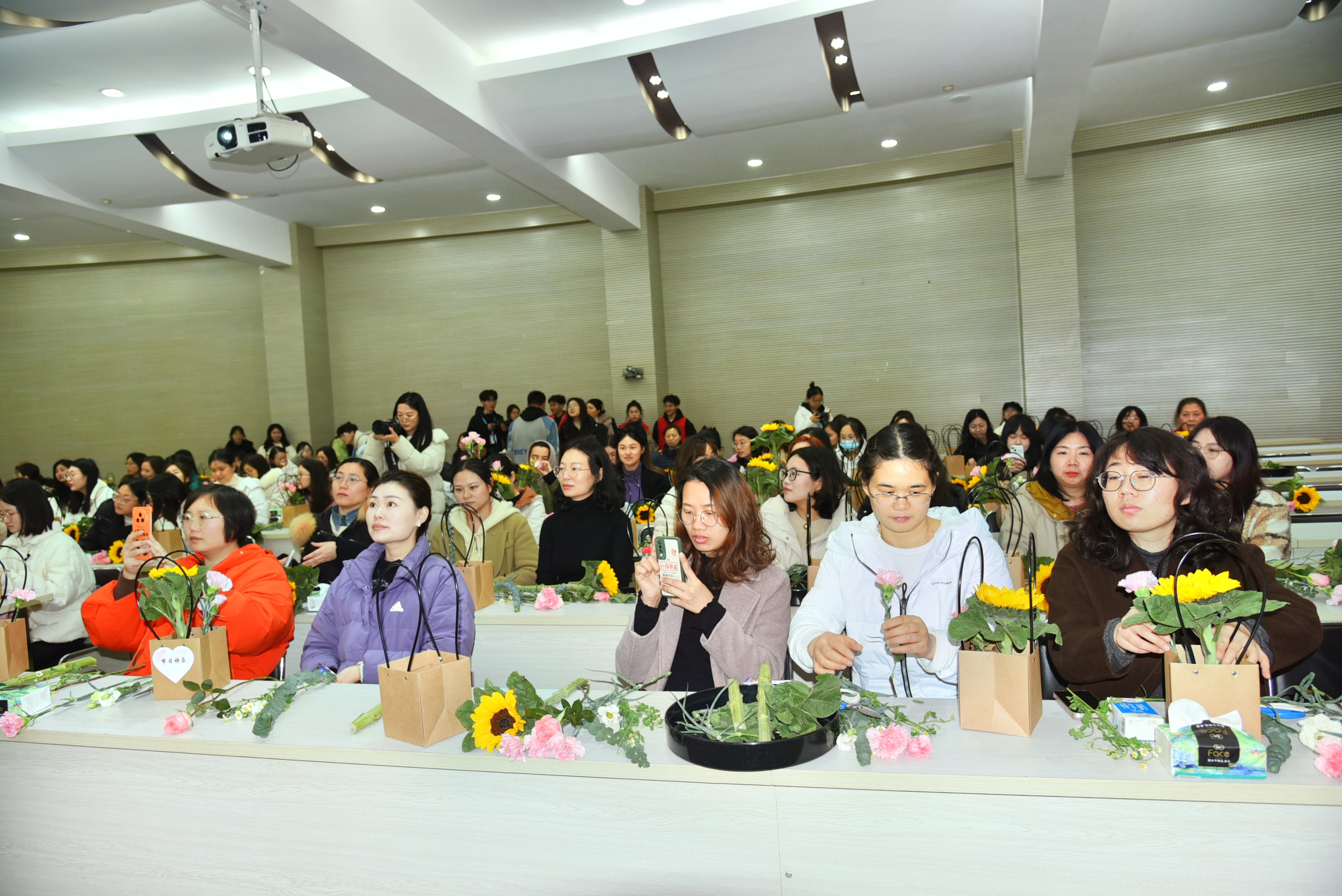 在“三八”国际妇女节来临之际,为进一步激发女教职工积极向上、自强不息的精神。3月7日中午,学院工会在博雅楼207会议室举办了“礼赞新时代 巾帼绽芳华”插花艺术活动。本次活动由农林科技学院工会小组承办,刘腾插花花艺师区级技能大师工作室协办,学院女教职工130余人参加活动。