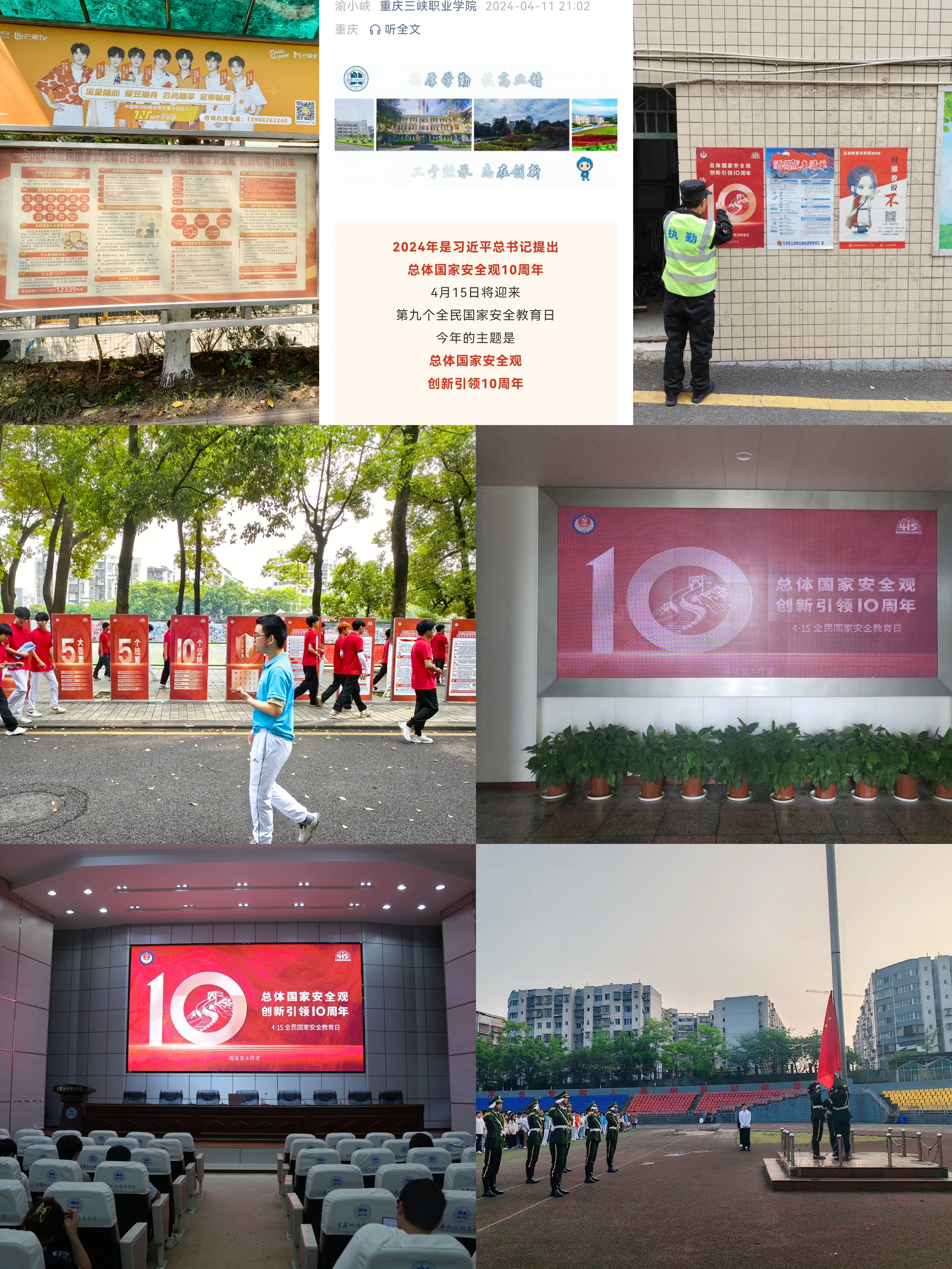 为深入贯彻落实党的二十大精神和总体国家安全观,落实立德树人根本任务,根据《重庆市教育委员会关于做好第九个全民国家安全教育日活动的通知》(渝教安函〔2024〕42号)工作要求,学院领导高度重视,制定专项活动方案,紧紧围绕“总体国家安全观 创新引领10周年”开展了系列活动。