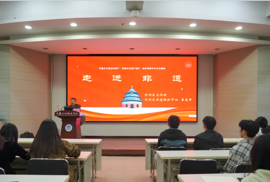 4月14日晚,博雅楼207内重庆三峡职业学院“劳动月·非遗大讲堂”正式开讲。本次讲座以“走进非遗”为主题,特邀万州区文化馆馆长、万州区非遗保护中心主任易良军担任主讲。