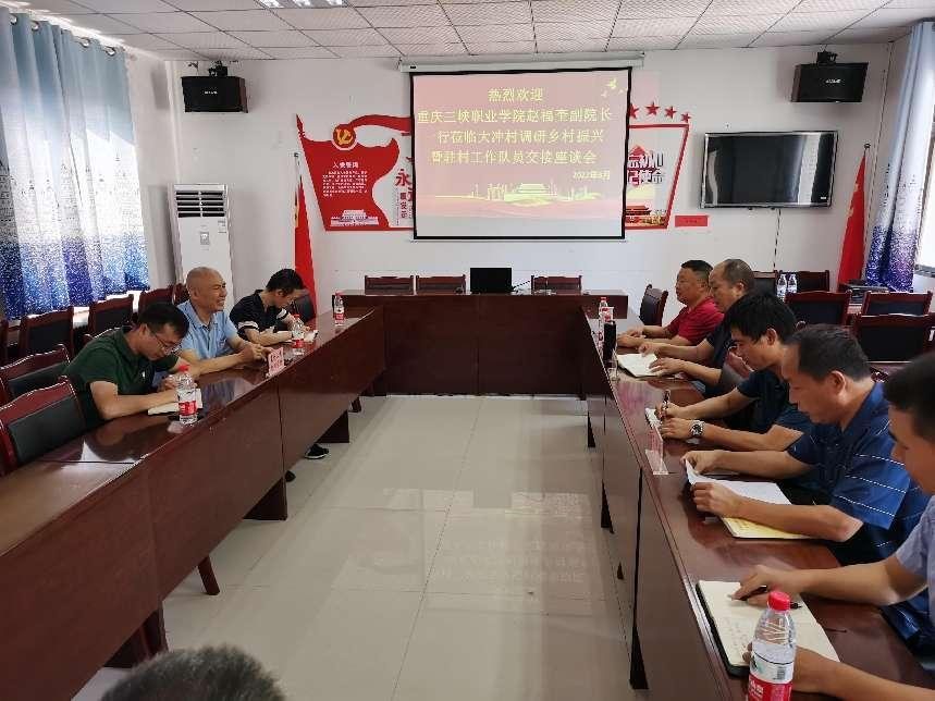 为确保驻村干部轮换工作有序进行,做到标准不降低、力量不减弱、工作不断档,持续有力推动乡村振兴工作,根据《重庆市万州区乡村振兴驻乡驻村工作领导小组办公室关于调整有关乡村振兴驻村工作队员的通知》精神,8月26日,学院党委委员、副院长赵福奎一行送新选派驻村工作队员柯伟到分水镇大冲村开展交接工作。