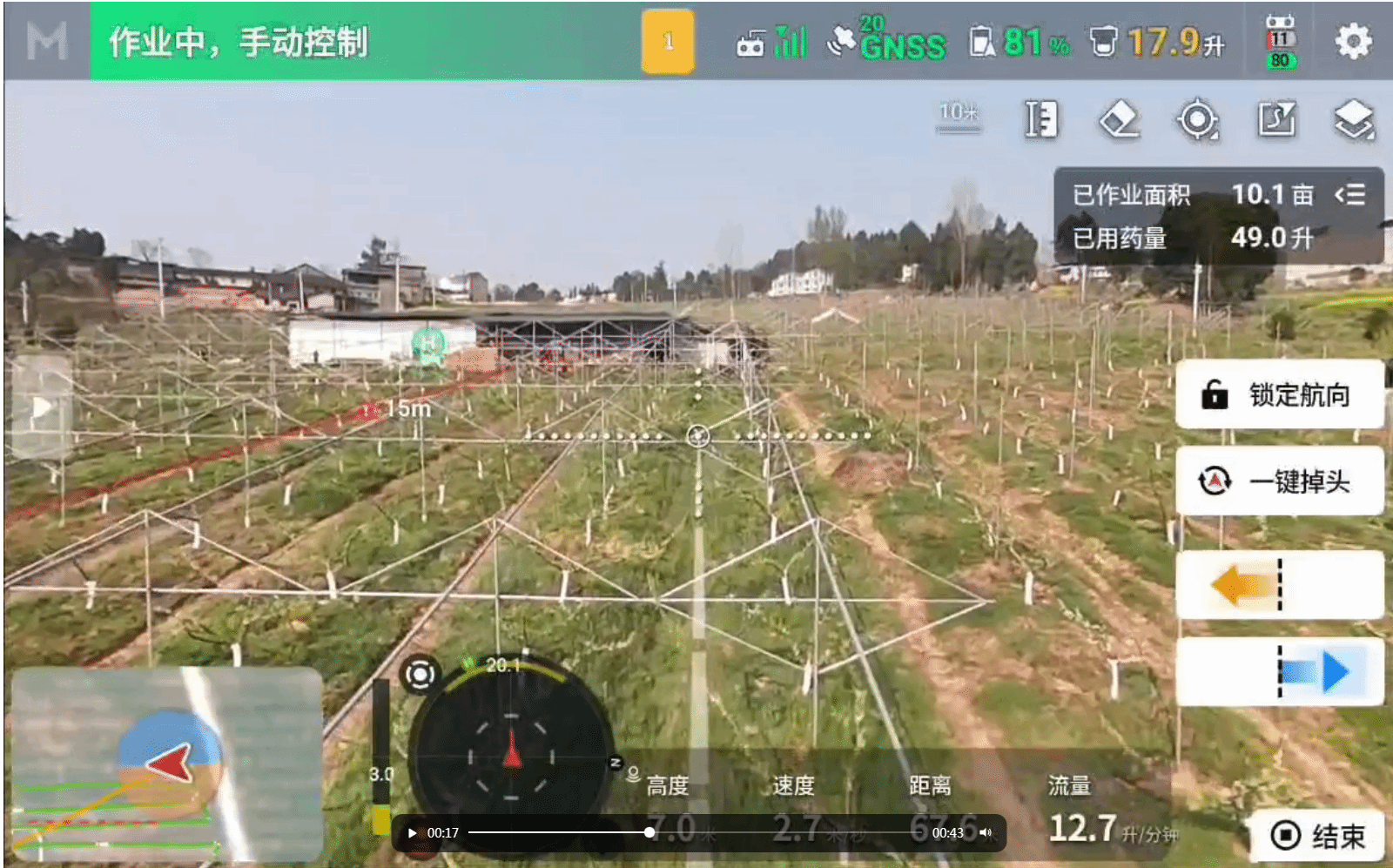 2.山地植保无人飞机施药技术,已在重庆市万州区新立果蔬专业合作社、重庆鑫家园农业发展有限公司、重庆一亩良园农业发展有限公司示范推广。