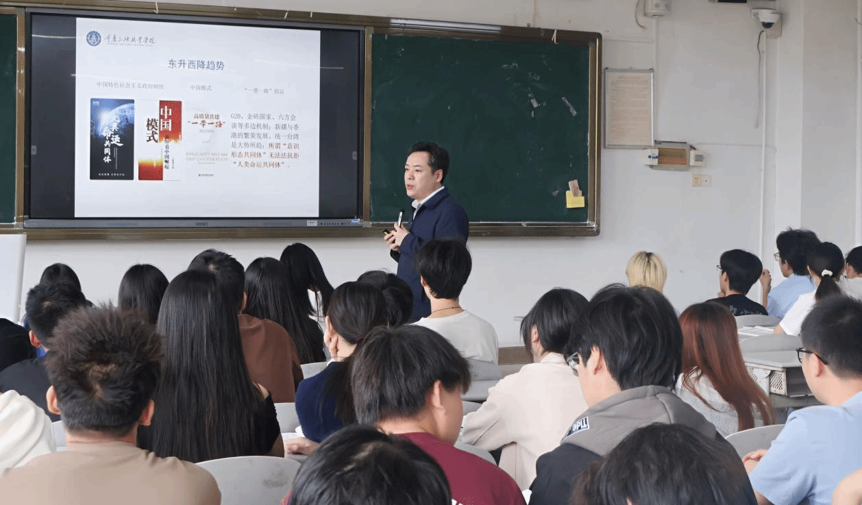 5月9日上午,校党委书记谈建成走进博雅楼502教室,以“探寻新时期中美正确相处之道”为主题,为2023级宠物医疗技术3、4班学生带来了一场兼具历史厚度与现实深度的思政课。课程围绕“中美关系跌宕历程”“特朗普再度执政的影响”和“解好中美关系必答题”三大核心议题展开,将大国博弈的宏观叙事与青年学生专业成长紧密结合,引发学生热烈反响。
