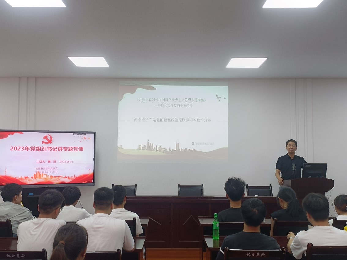 6月20日中午,智能制造学院党总支副书记黄滔以“‘两个维护’是党的最高政治原则和根本政治规矩”为题,为智能制造学院学生党员及入党积极分子共计60余人进行了专题党课讲授。