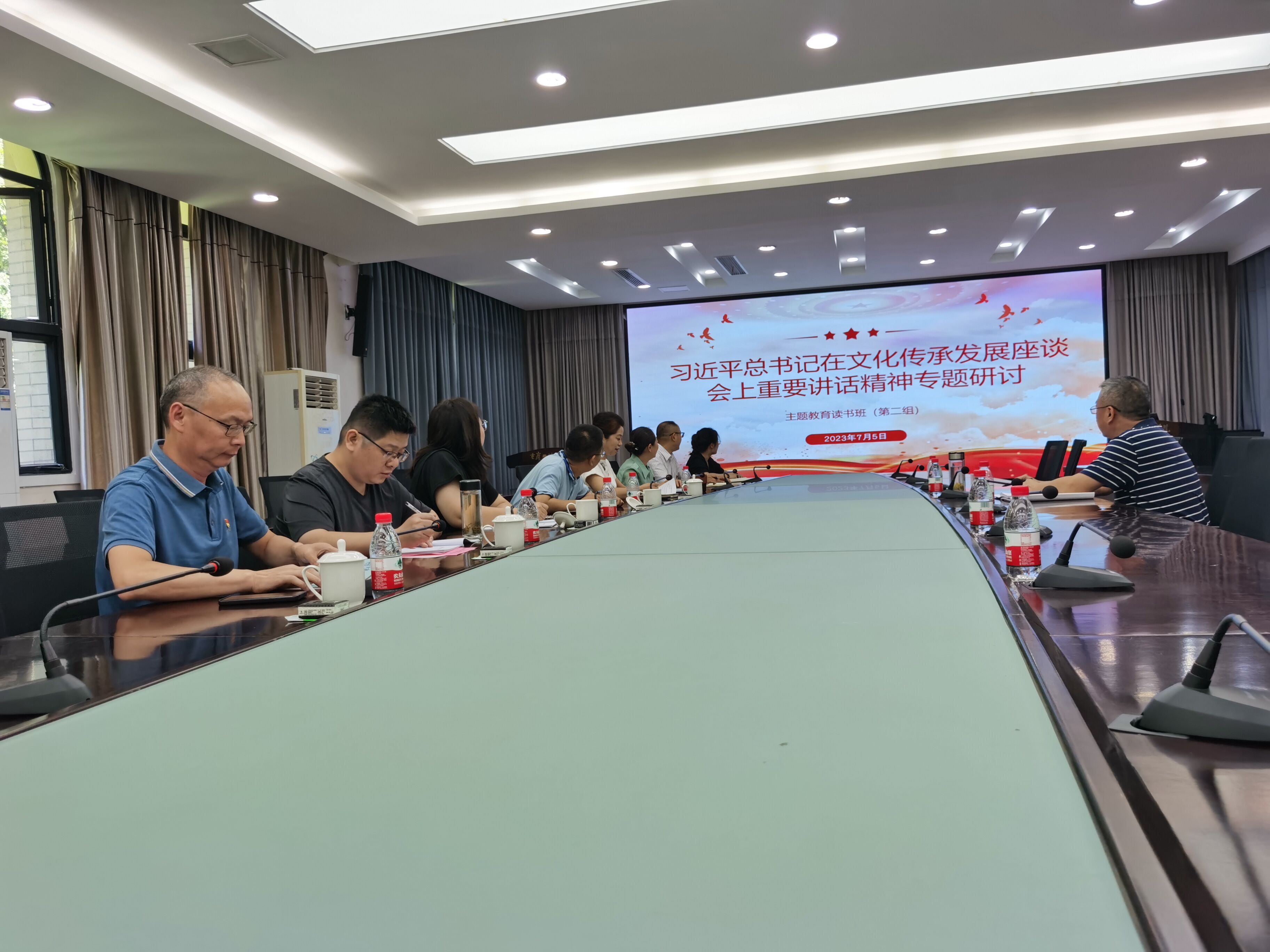7月5日上午,中共重庆三峡职业学院委员会学习贯彻习近平新时代中国特色社会主义思想主题教育读书班第二组在行政楼三楼会议室开展专题学习研讨,围绕“习近平总书记在文化传承发展座谈会上的重要讲话精神”交流学习心得。本次学习研讨应到9人,实到9人,学习研讨会由学院院长李炯光主持。
